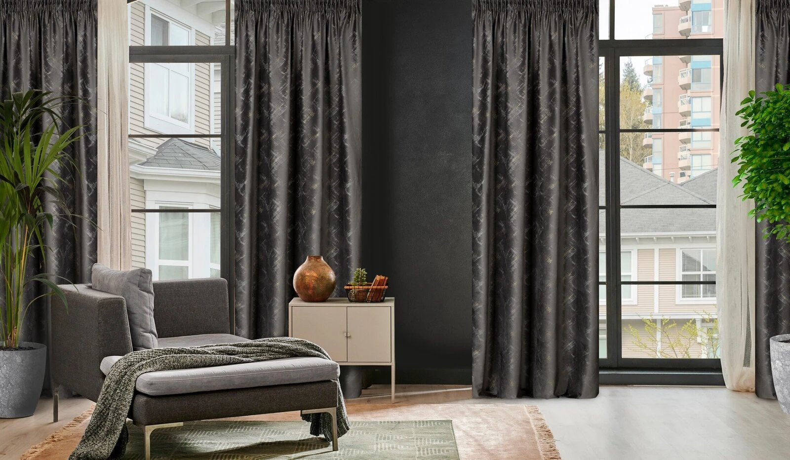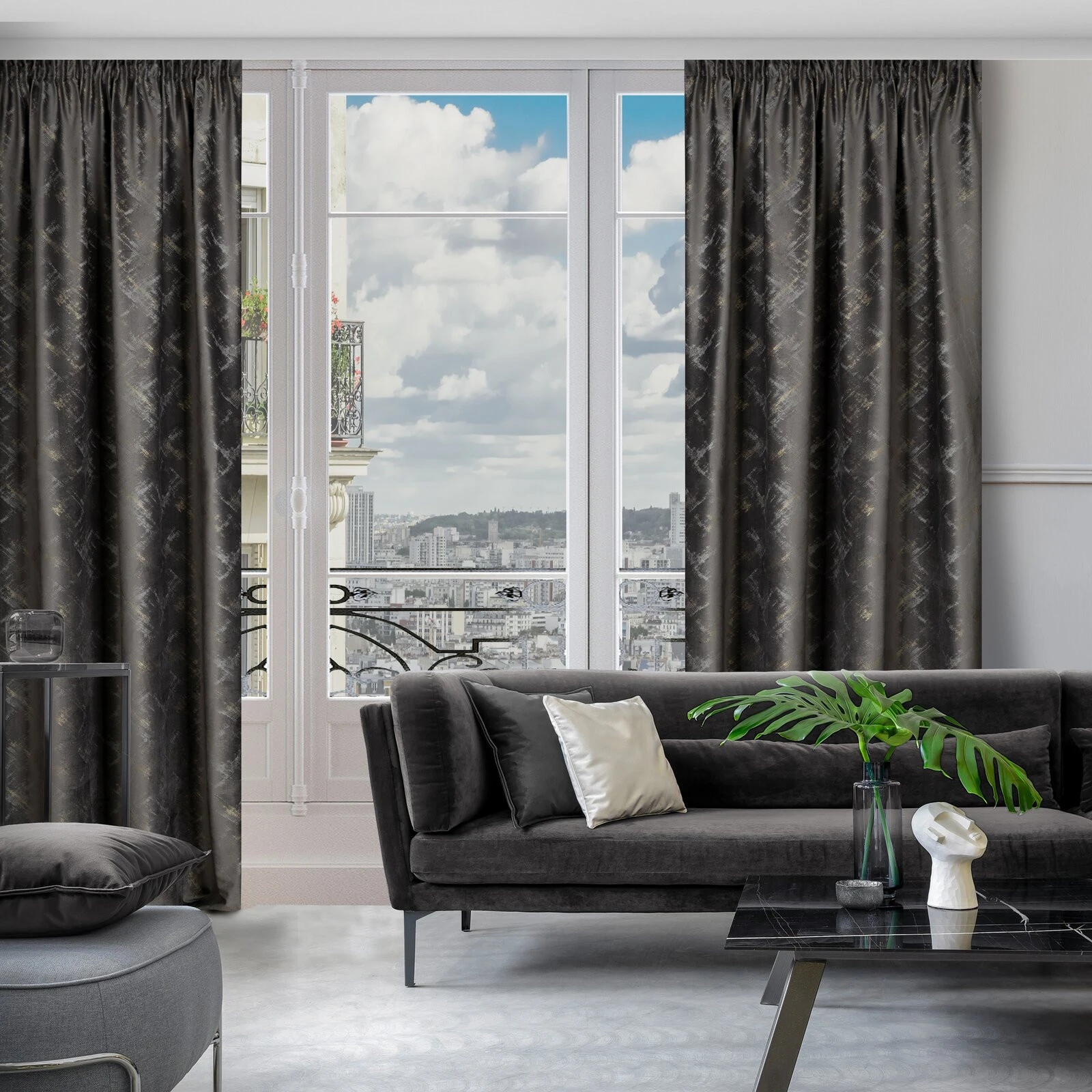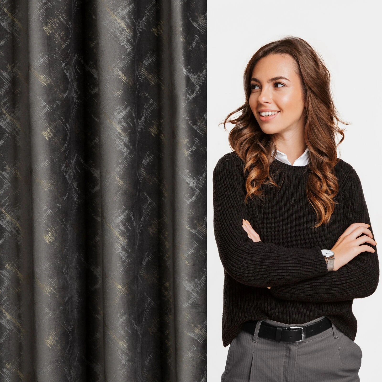 Zasłona welwetowa z nadrukiem szampańskim szerokość: 140 cm, długość: 270 cm, kolor: grafitowy, Gramatura: 200 GSM, Skład: 100% poliester