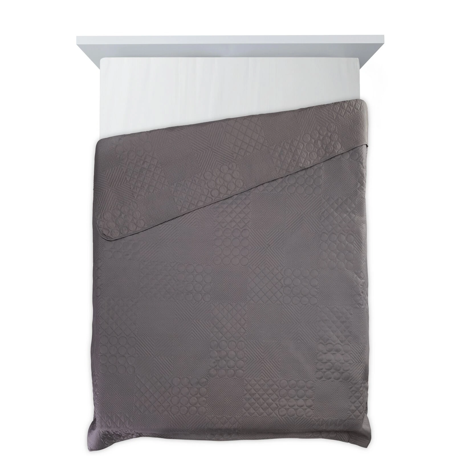 Narzuta jednokolorowa, wykonana techniką hot press szerokość: 220 cm, długość: 240 cm, kolor: grafitowy, Gramatura: 70+120+70 GSM, Skład: 100% poliester