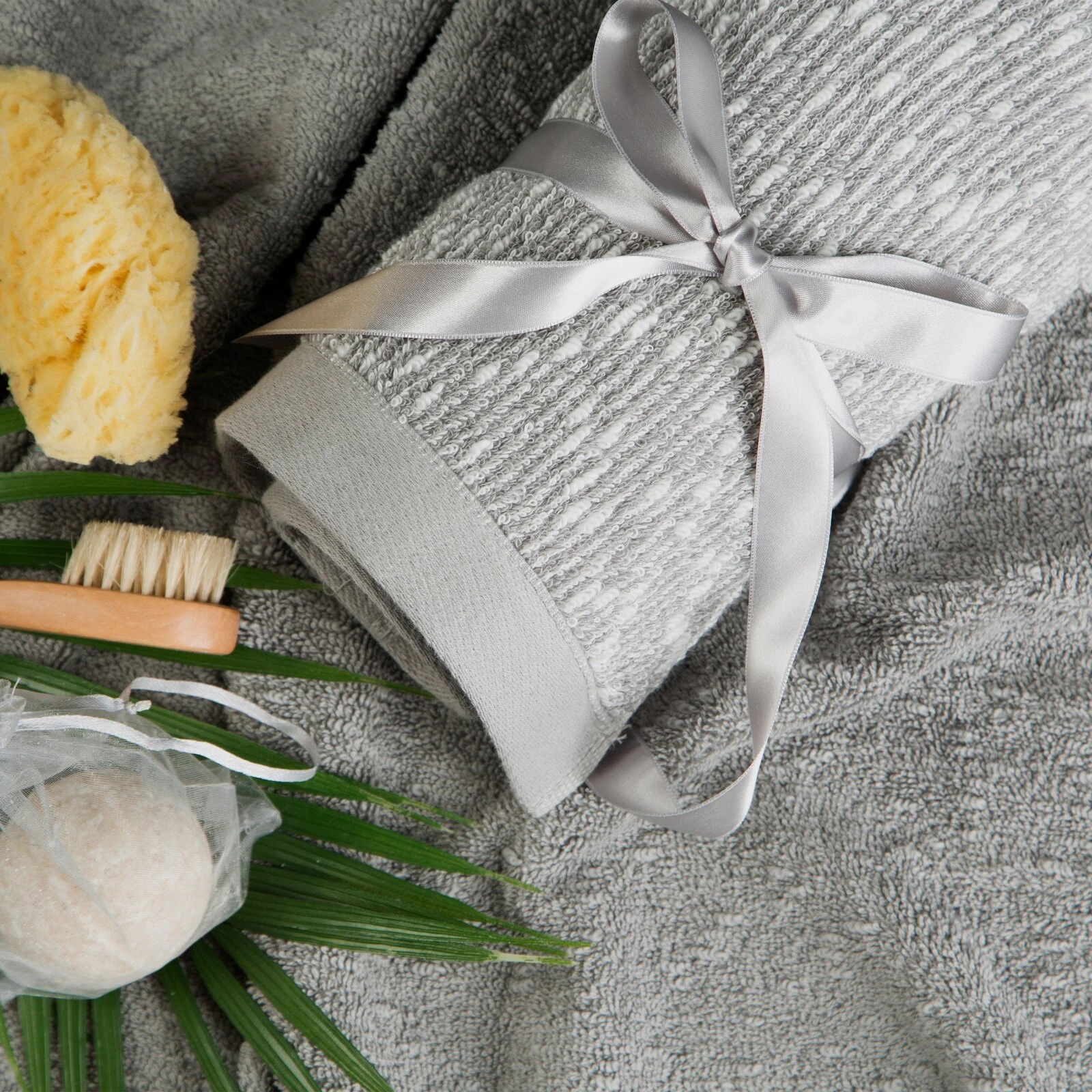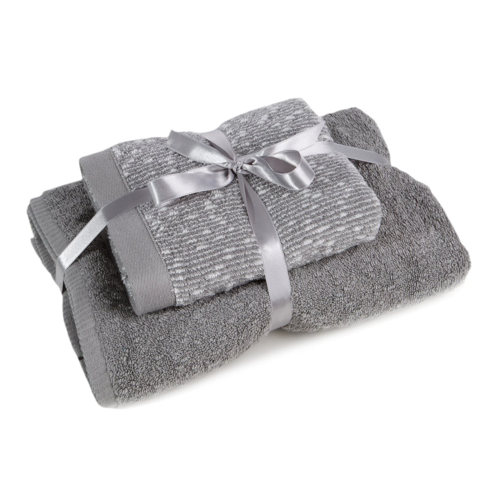 Komplet ręczników z efektem boucle szerokość: 37 cm, długość: 25 cm, kolor: stalowy, Gramatura: 550 GSM, Skład: 100% bawełna
