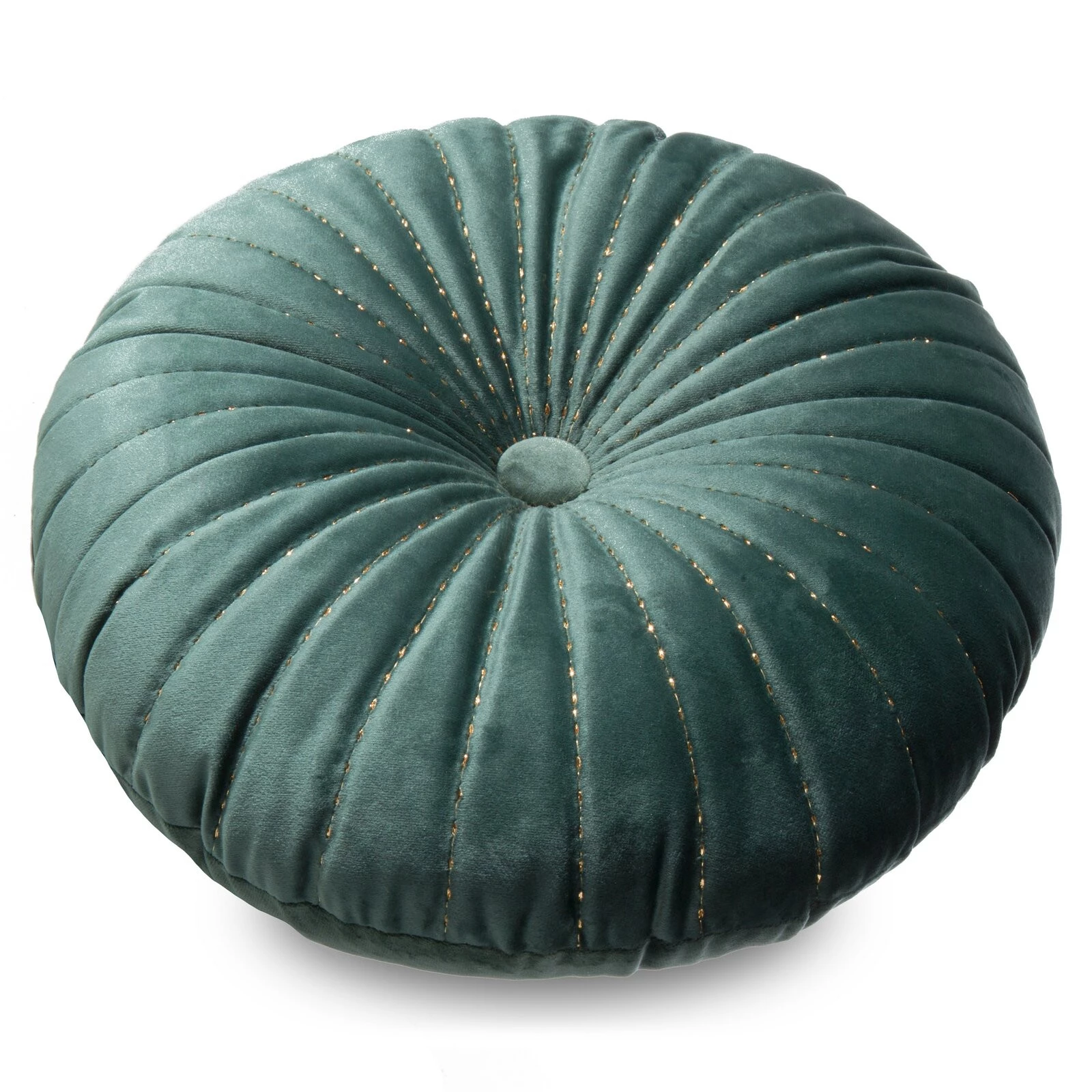 Okrągła poduszka welwetowa z wypełnieniem przeszyta złotą nicią kolor: ciemnomiętowy, Gramatura: 250GSM+270GSM FILLING GSM, Skład: 100% poliester