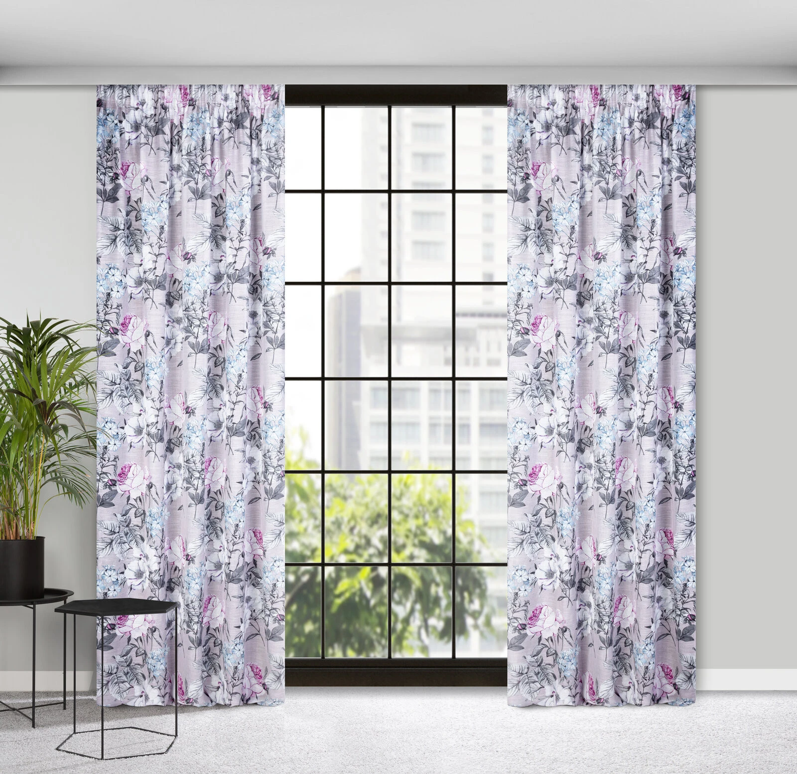 - Zasłona z etaminy z kwiatowym nadrukiem szerokość: 140 cm, długość: 270 cm, kolor: różowy, Gramatura: 80 GSM, Skład: 100% poliester
