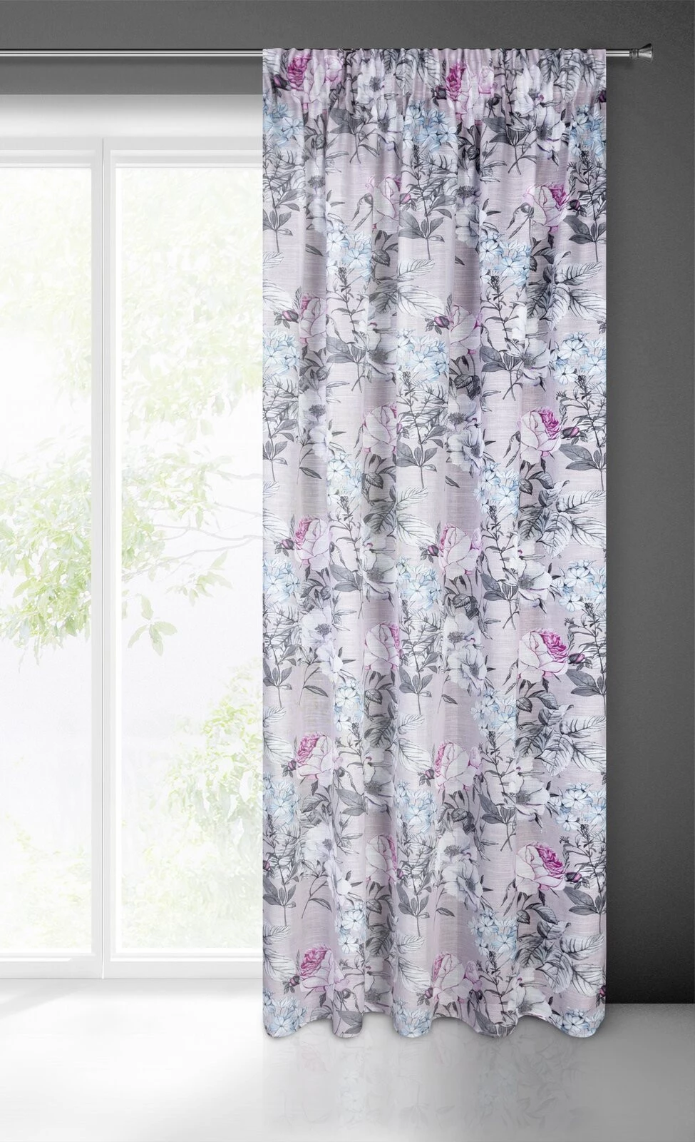 Zasłona z etaminy z kwiatowym nadrukiem szerokość: 140 cm, długość: 270 cm, kolor: różowy, Gramatura: 80 GSM, Skład: 100% poliester