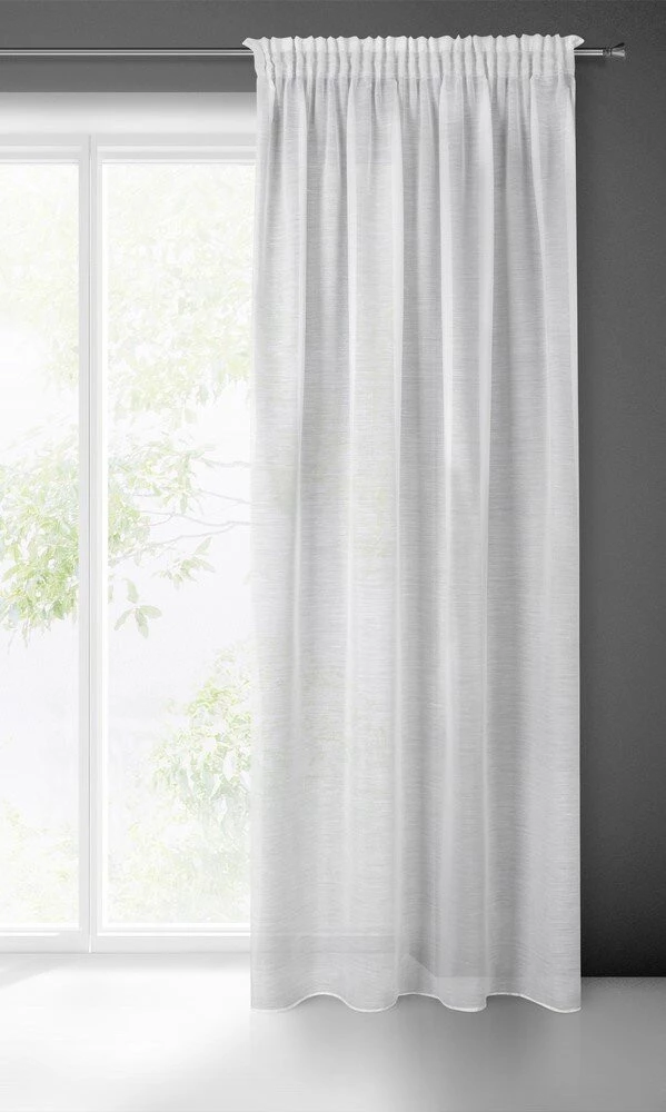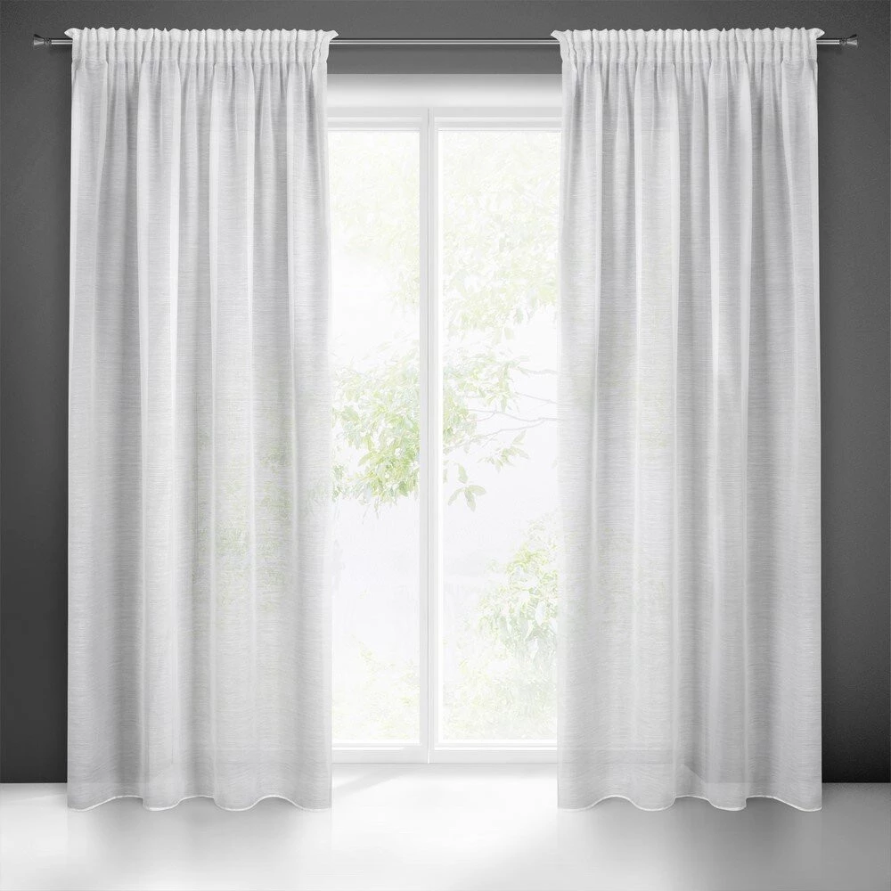 - Firana gotowa gładka szerokość: 140 cm, długość: 270 cm, kolor: biały, Gramatura: 70 GSM, Skład: 100% poliester
