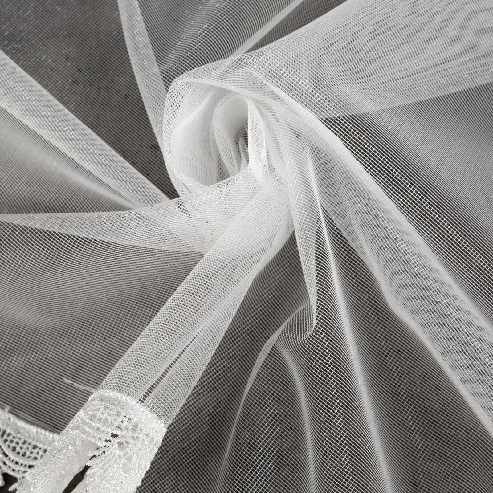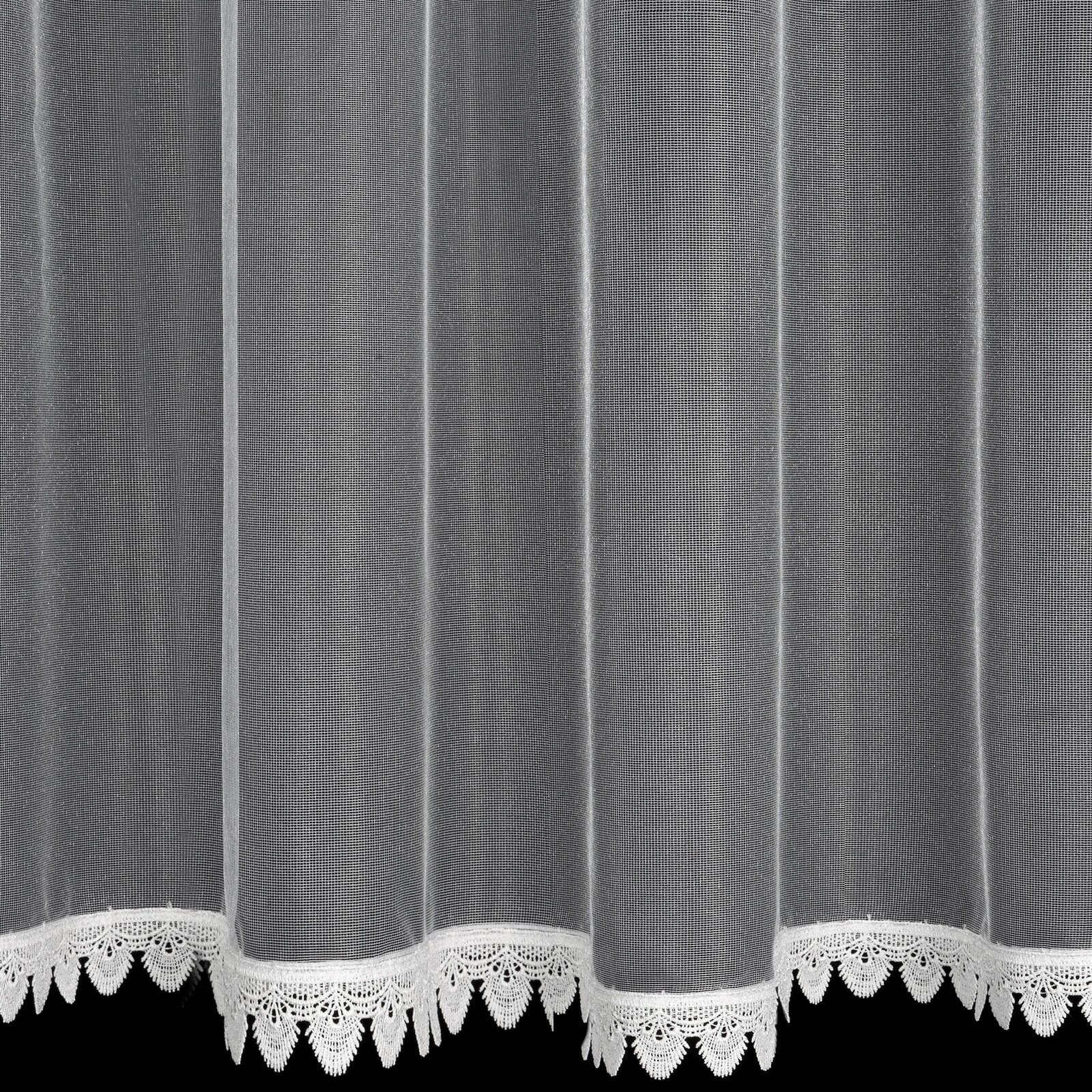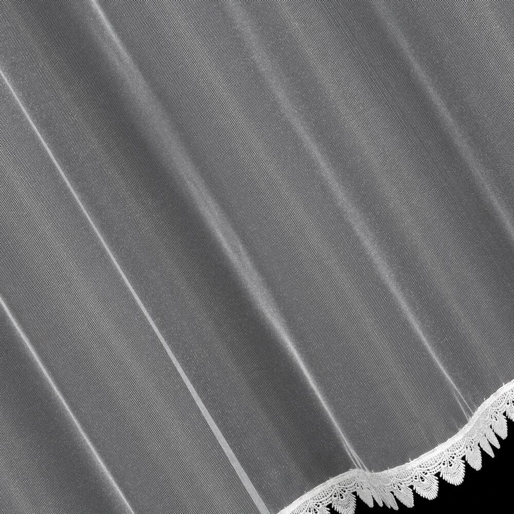 Firana gotowa z ozdobnyą koronką szerokość: 300 cm, długość: 145 cm, kolor: biały, Gramatura: 40 GSM, Skład: 100% poliester