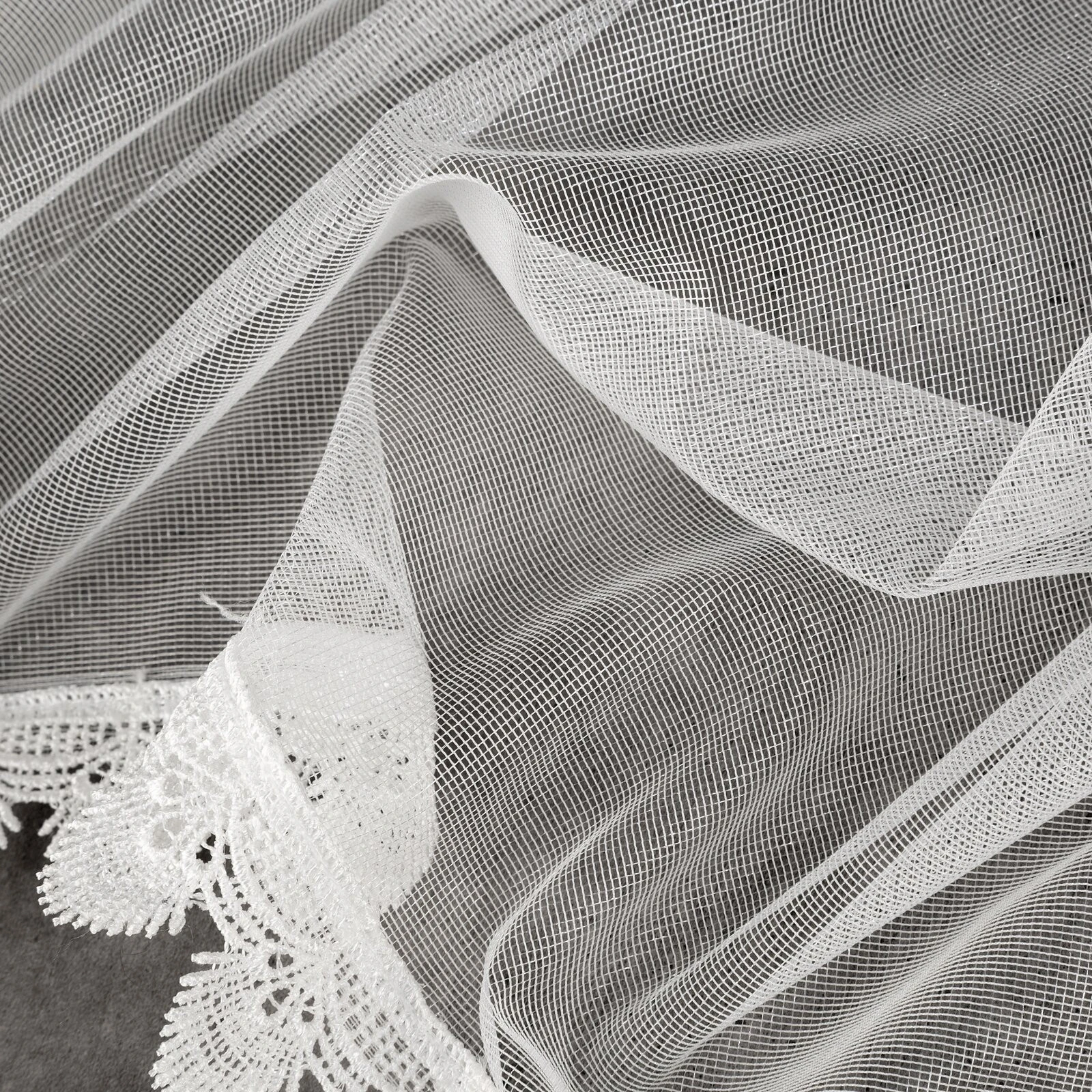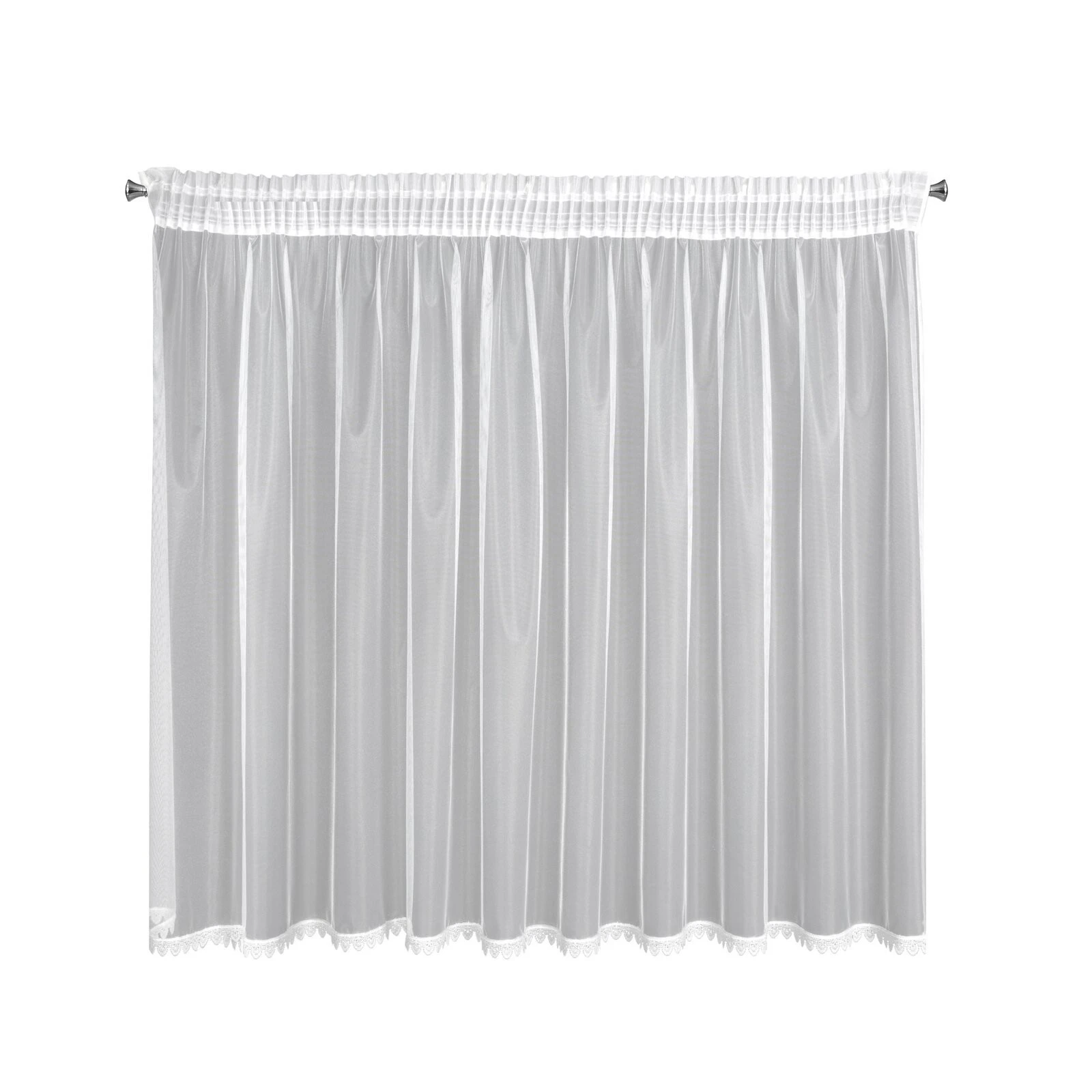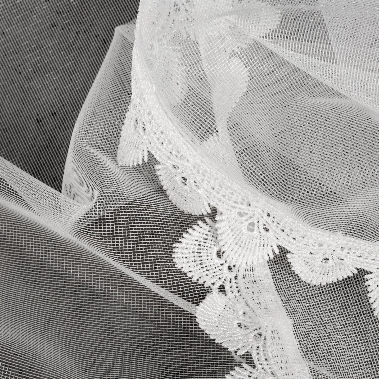 Firana gotowa z ozdobnyą koronką szerokość: 300 cm, długość: 145 cm, kolor: biały, Gramatura: 40 GSM, Skład: 100% poliester