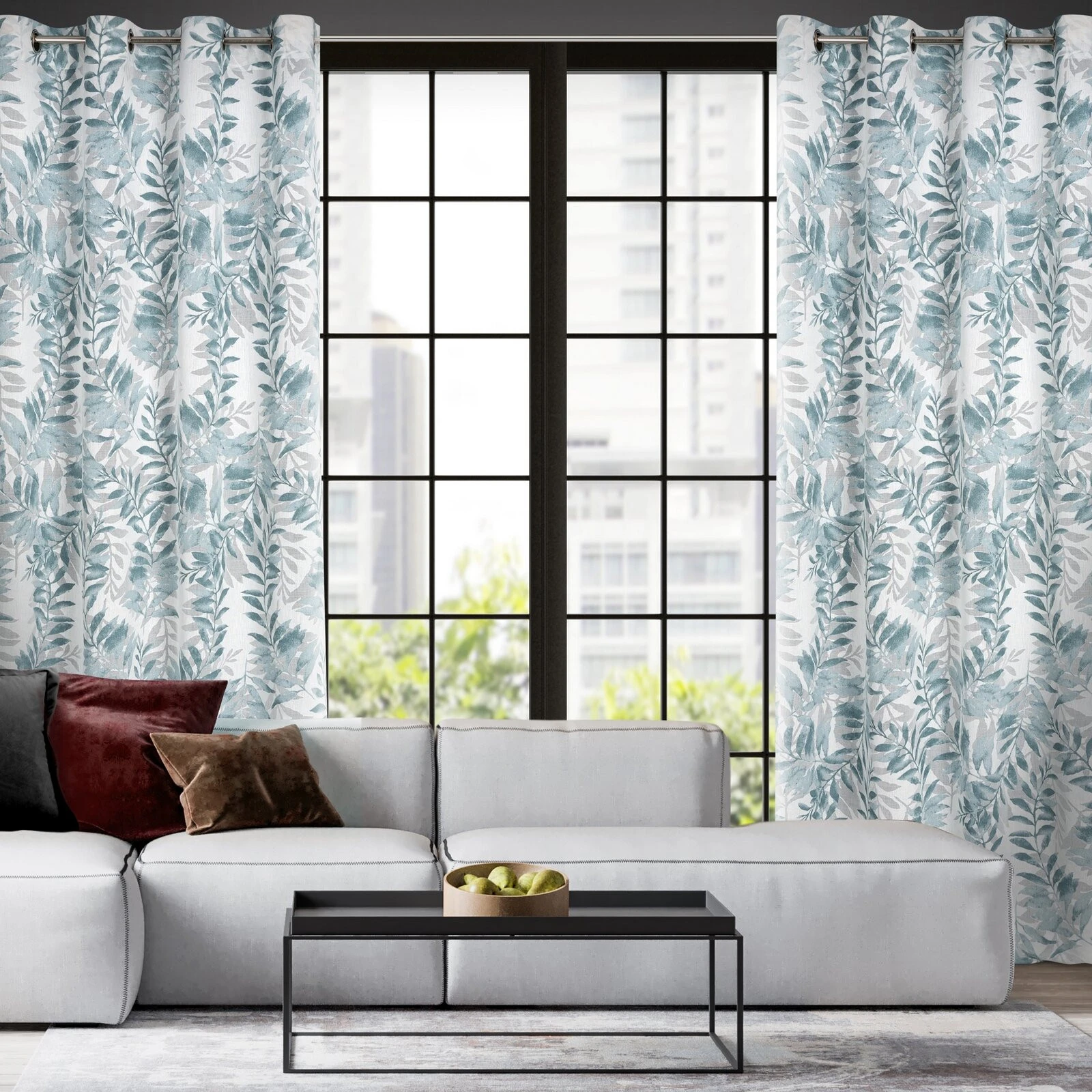 - Zasłona gotowa z motywem roślinnym szerokość: 140 cm, długość: 250 cm, kolor: naturalny, Gramatura: 120 GSM, Skład: 100% poliester