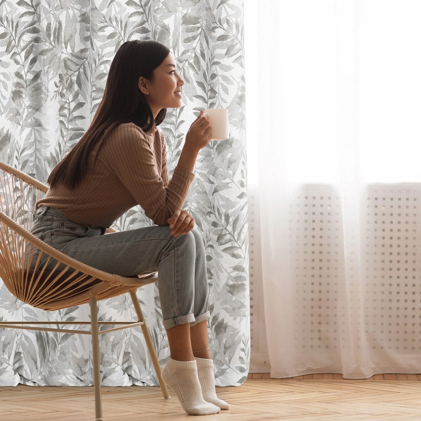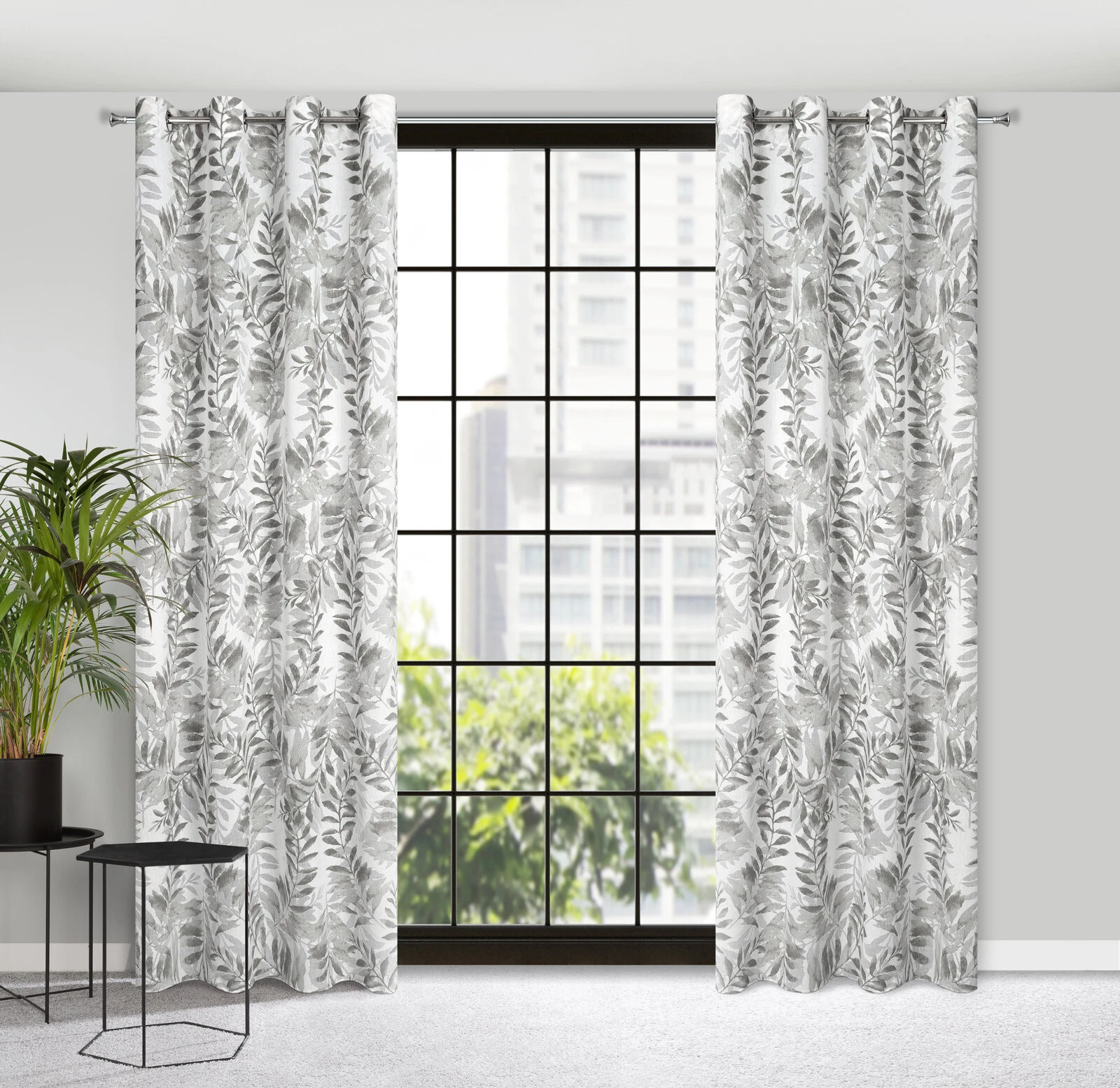 - Zasłona gotowa z motywem roślinnym szerokość: 140 cm, długość: 250 cm, kolor: naturalny, Gramatura: 120 GSM, Skład: 100% poliester