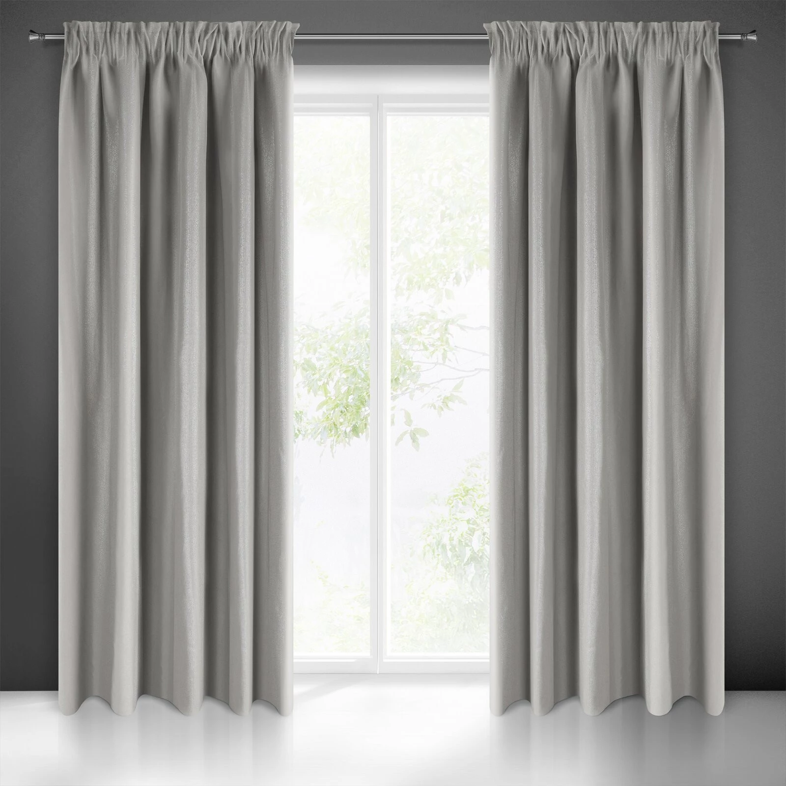 Prosta zasłona jednokolorowa o drobnym splocie z dodatkiem lureksu i lekko lśniącej powierzchni łatwo się upina i tworzy miękkie fale. szerokość: 140 cm, długość: 270 cm, kolor: ciemnobeżowy, Gramatura: 240 GSM, Skład: 100% poliester