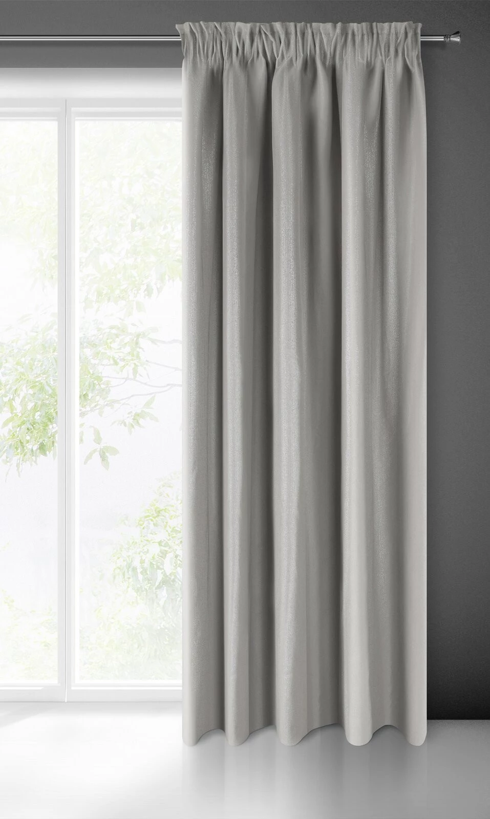 - Prosta zasłona jednokolorowa o drobnym splocie z dodatkiem lureksu i lekko lśniącej powierzchni łatwo się upina i tworzy miękkie fale. szerokość: 140 cm, długość: 270 cm, kolor: ciemnobeżowy, Gramatura: 240 GSM, Skład: 100% poliester