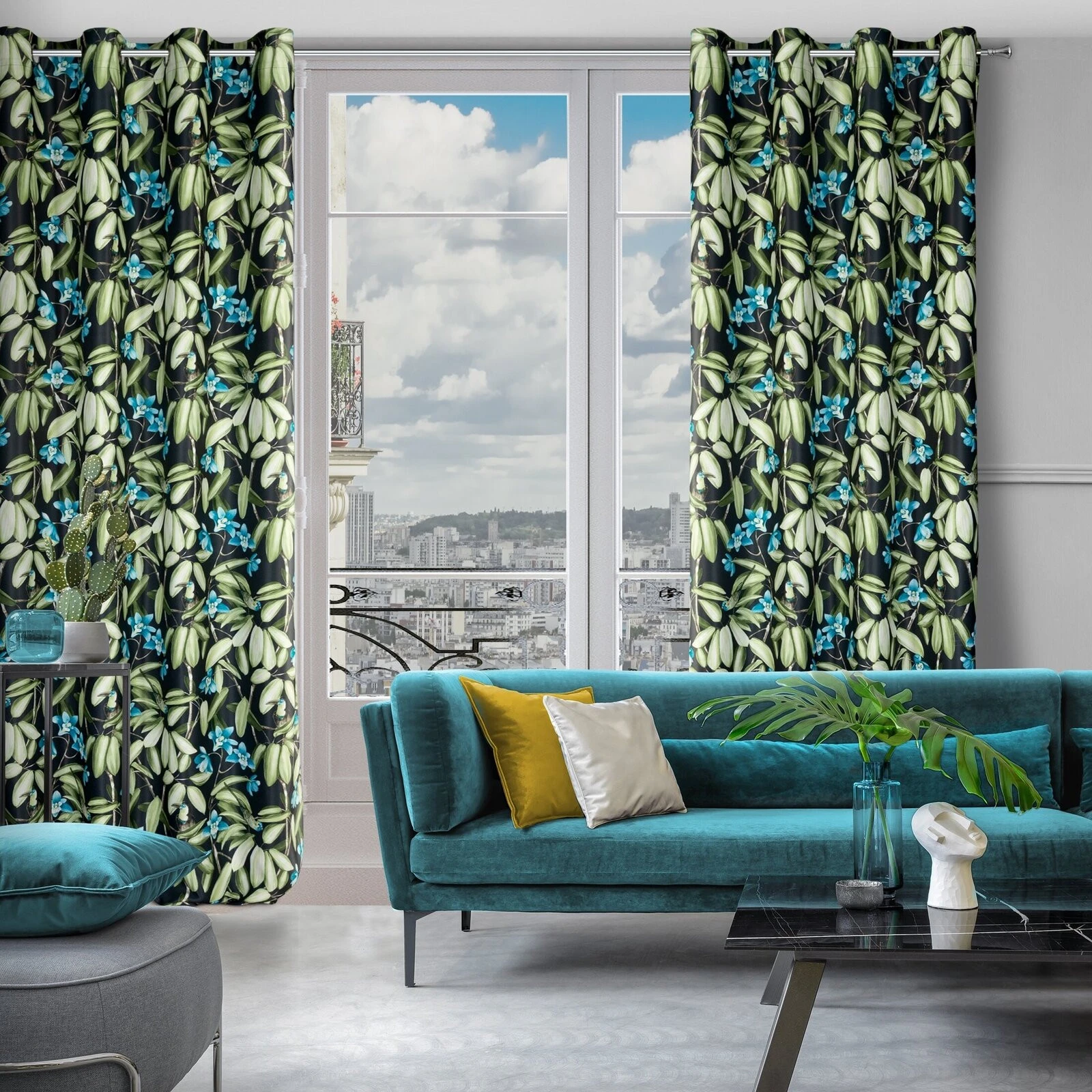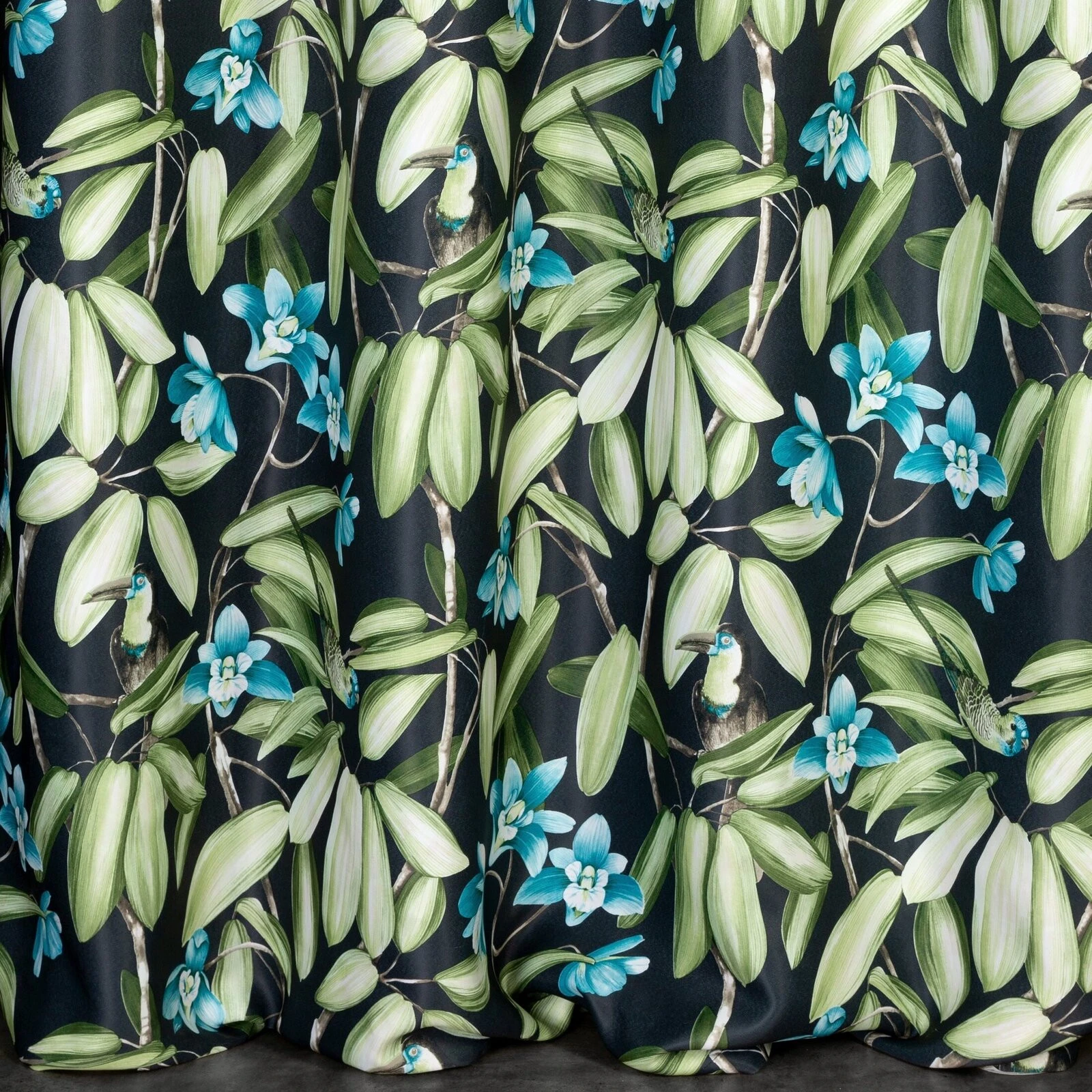 Zasłona zaciemniająca drukowana szerokość: 140 cm, długość: 250 cm, kolor: czarny, Gramatura: 210 GSM, Skład: 100% poliester