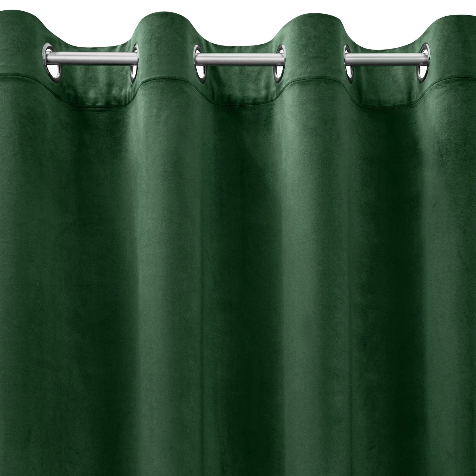 Miękka zasłona z welwetu o matowym wykończeniu. Mięsista tkanina o średnich właściwościach zaciemniających nadaje wnętrzu eleganckiego charakteru. szerokość: 215 cm, długość: 250 cm, kolor: ciemnozielony, Gramatura: 200 GSM, Skład: 100% poliester