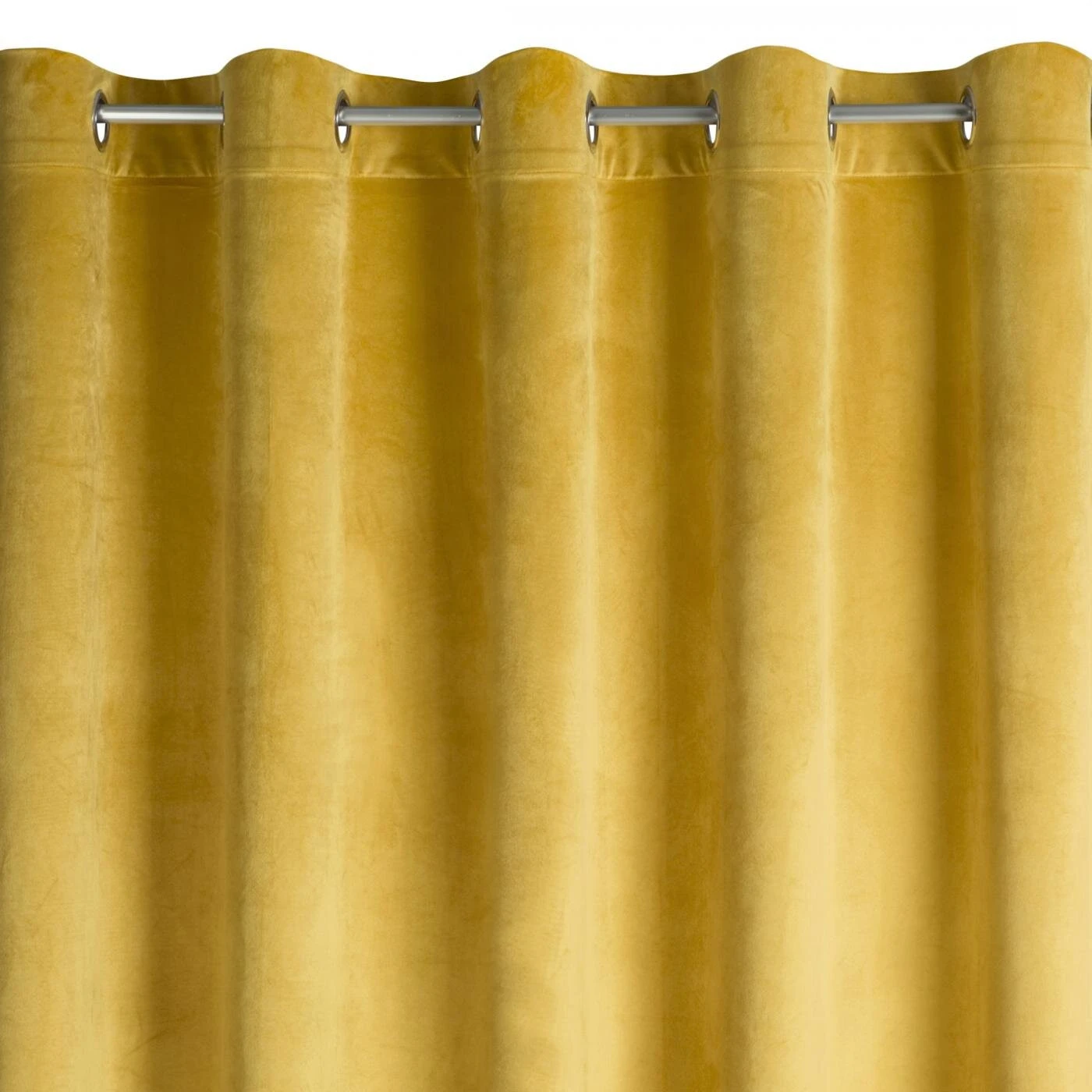 Miękka zasłona z welwetu o matowym wykończeniu. Mięsista tkanina o średnich właściwościach zaciemniających nadaje wnętrzu eleganckiego charakteru. szerokość: 215 cm, długość: 250 cm, kolor: musztardowy, Gramatura: 200 GSM, Skład: 100% poliester