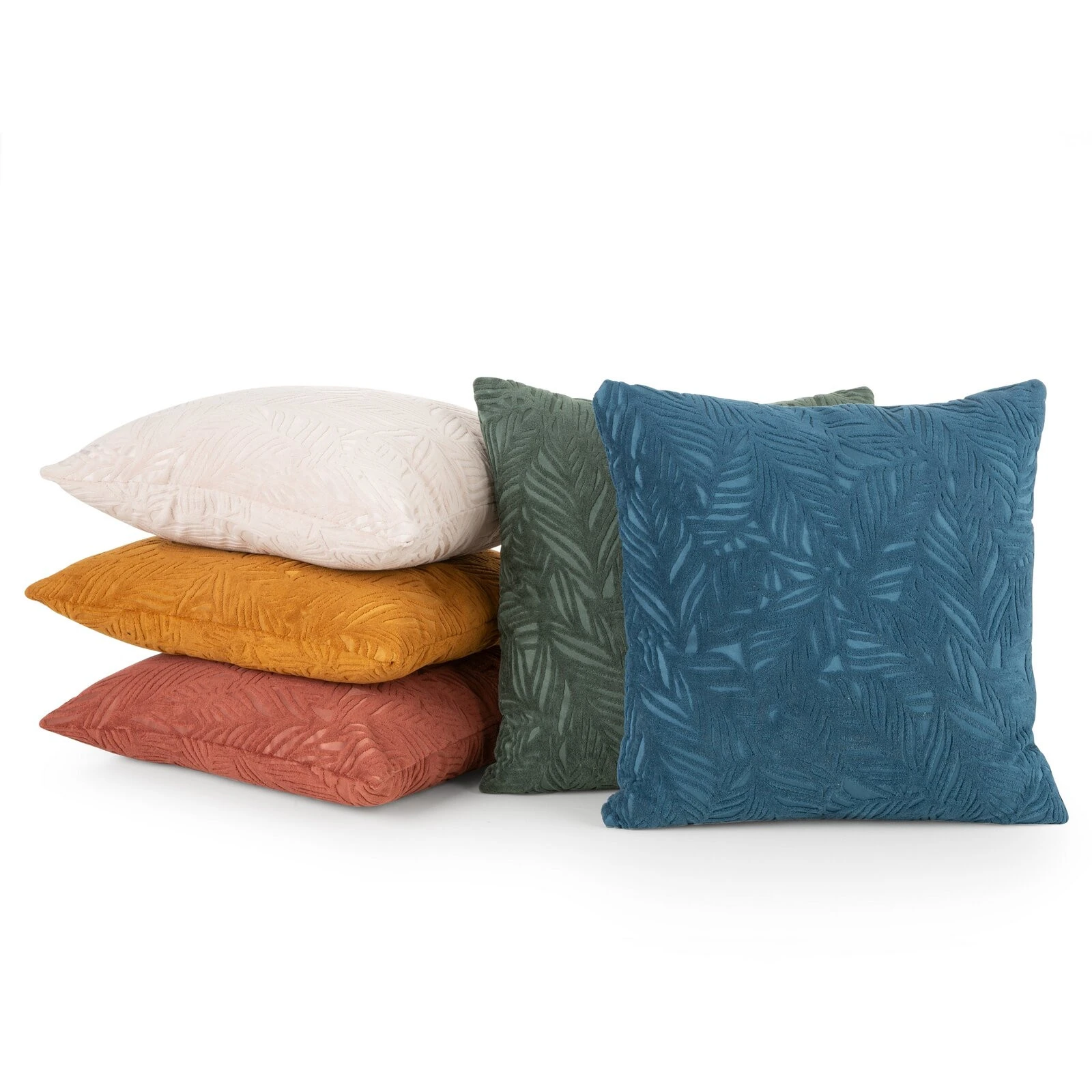 Poszewka z welwetu wycinanego z motywem roślinnym szerokość: 40 cm, długość: 40 cm, kolor: niebieski, Gramatura: 320 GSM, Skład: 100% poliester