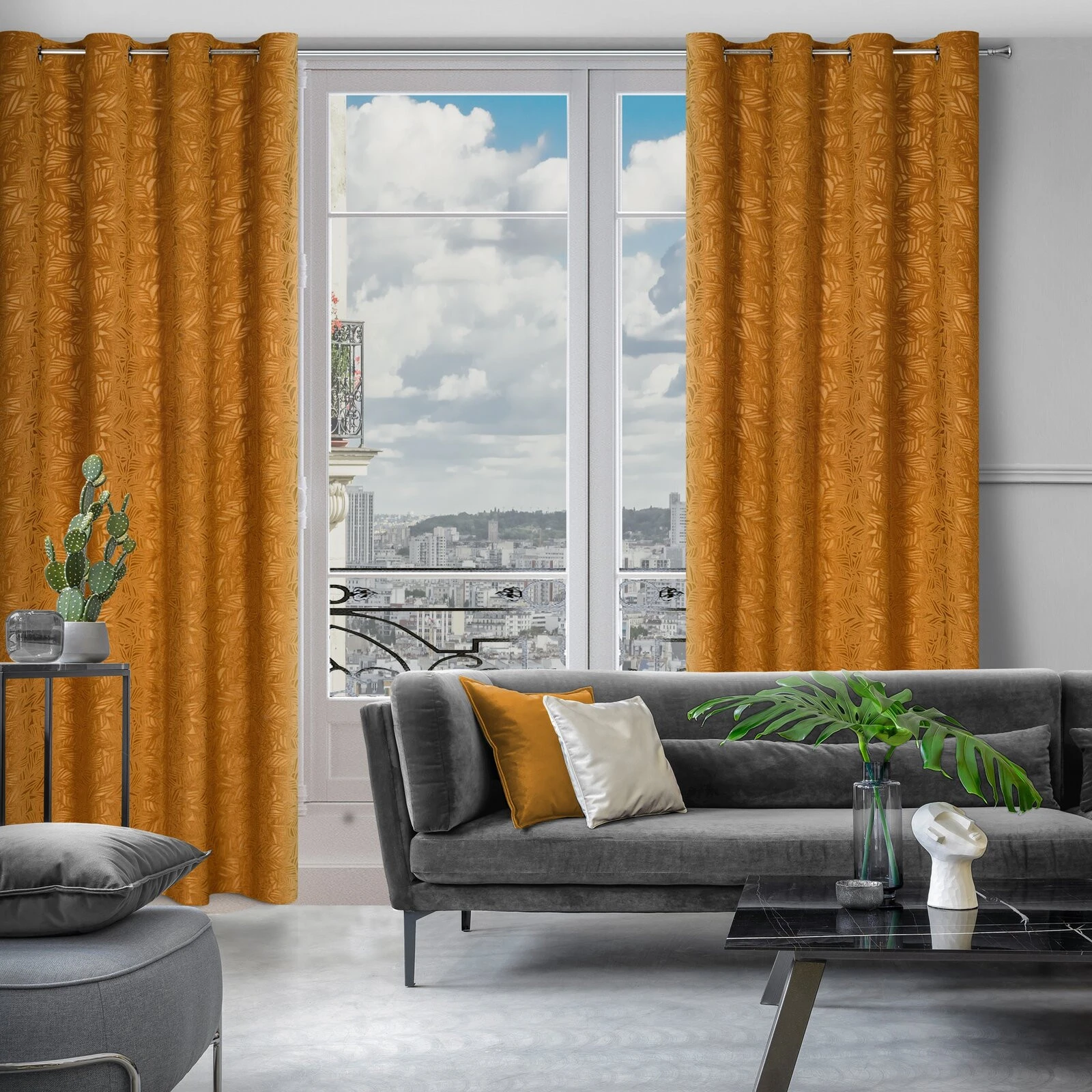 - Zasłona z welwetu wycinanego z motywem roślinnym szerokość: 140 cm, długość: 250 cm, kolor: miodowy, Gramatura: 320 GSM, Skład: 100% poliester
