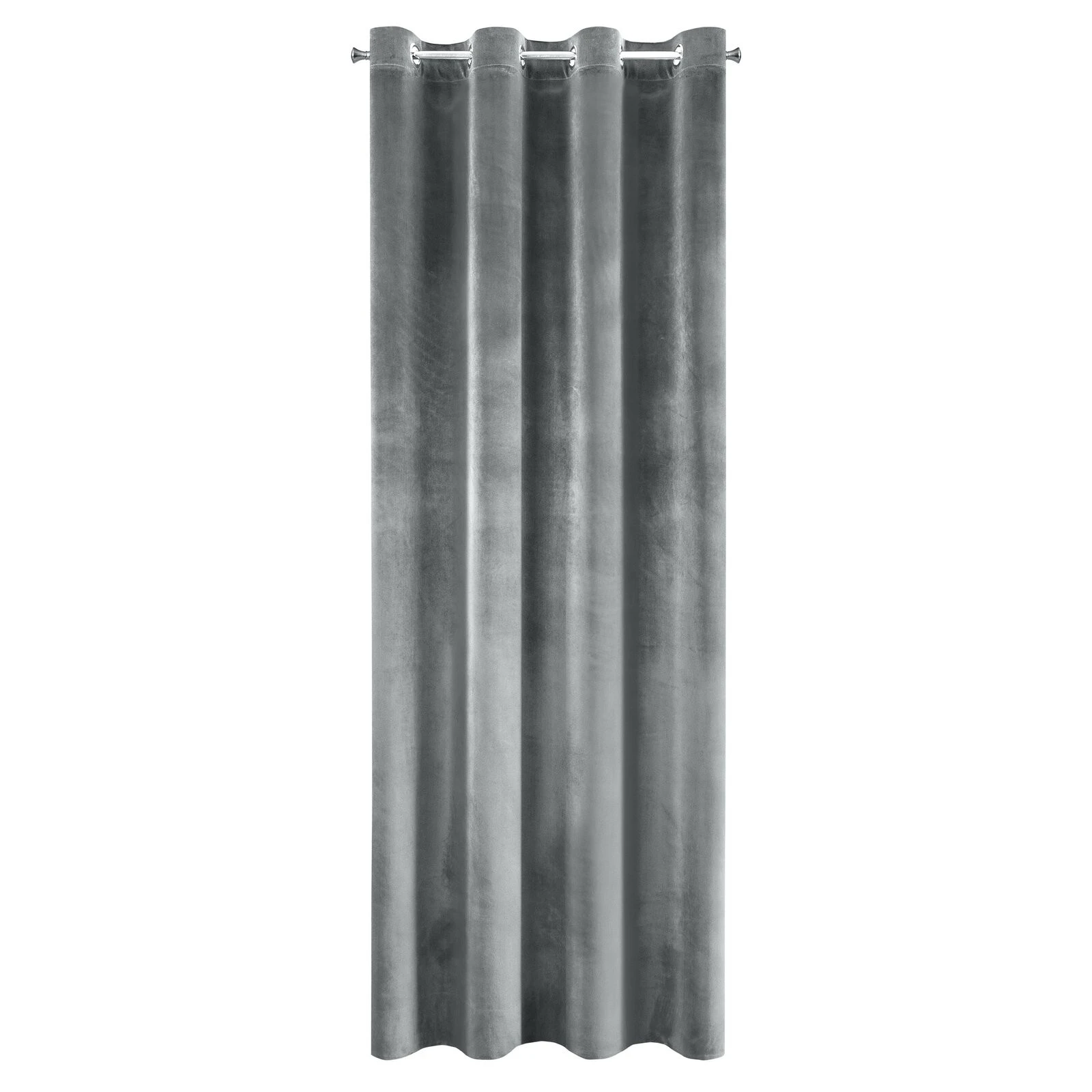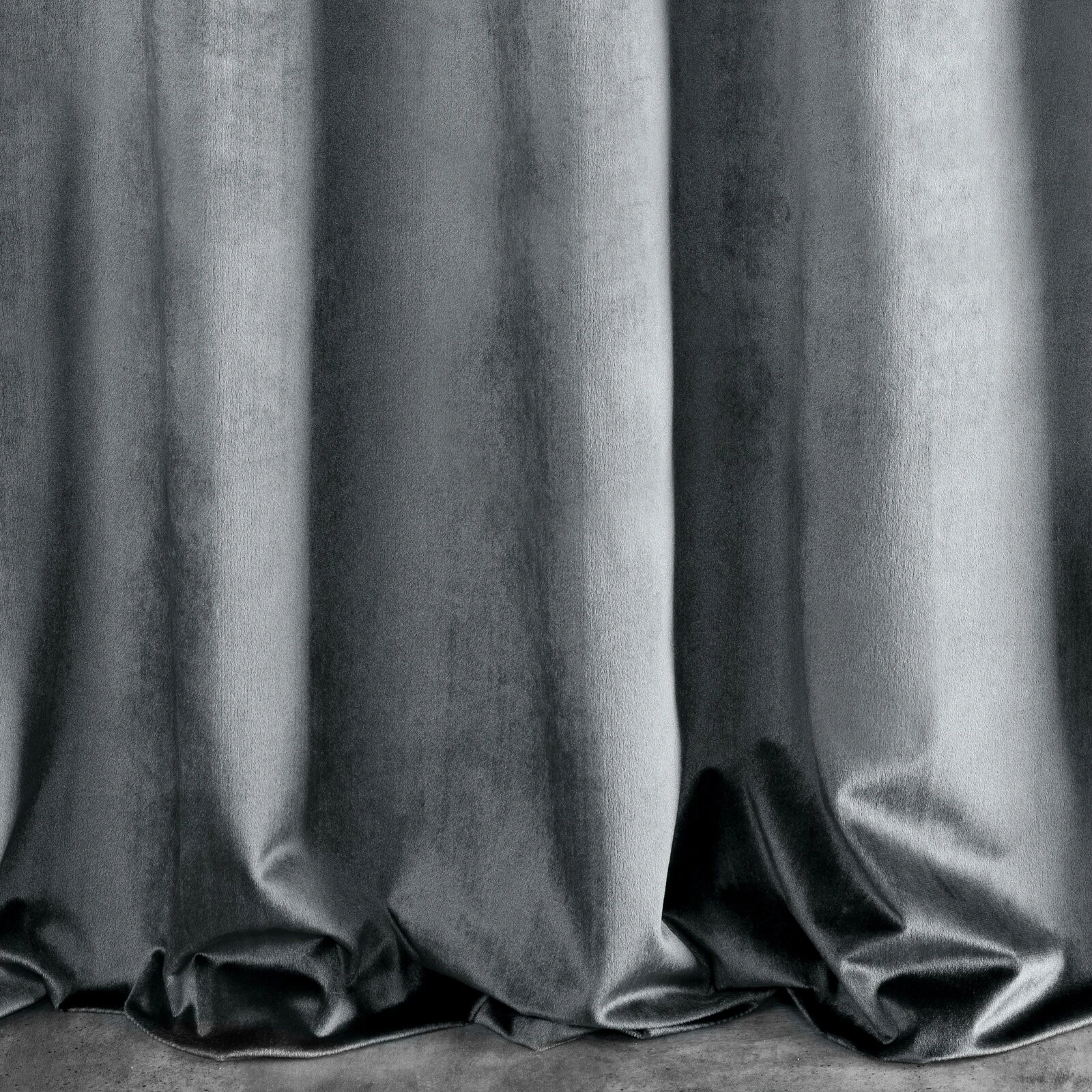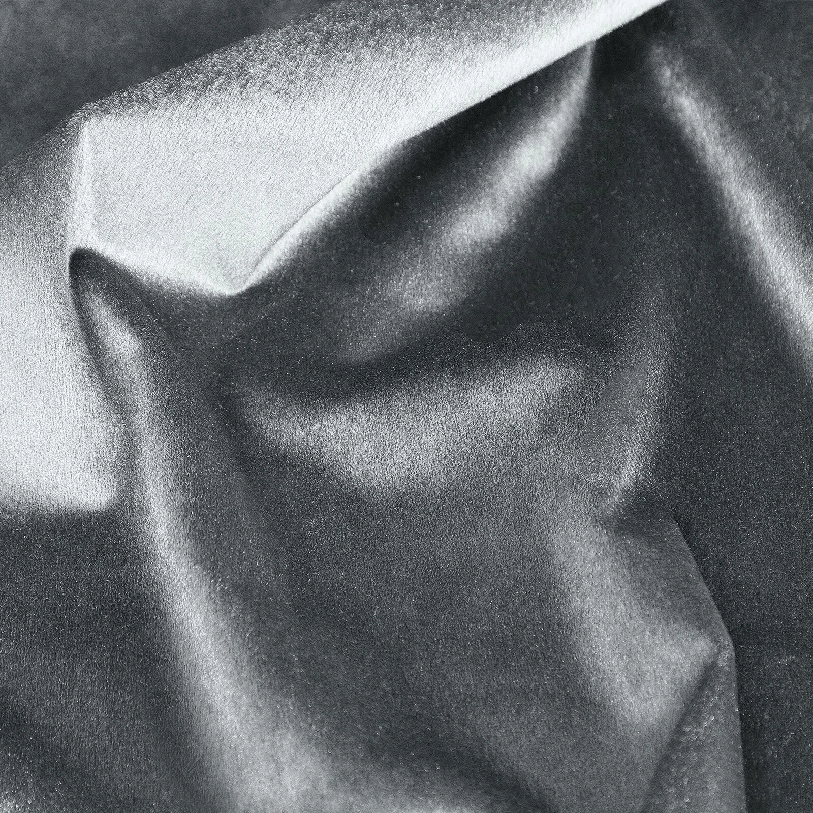 Lekka, welwetowa zasłona z miękkiej tkaniny o subtelnym połysku, charakterystycznym dla welwetów. Miękko się układa. Prasować na lewą stronę. szerokość: 140 cm, długość: 250 cm, kolor: grafitowy, Gramatura: 190 GSM, Skład: 100% poliester
