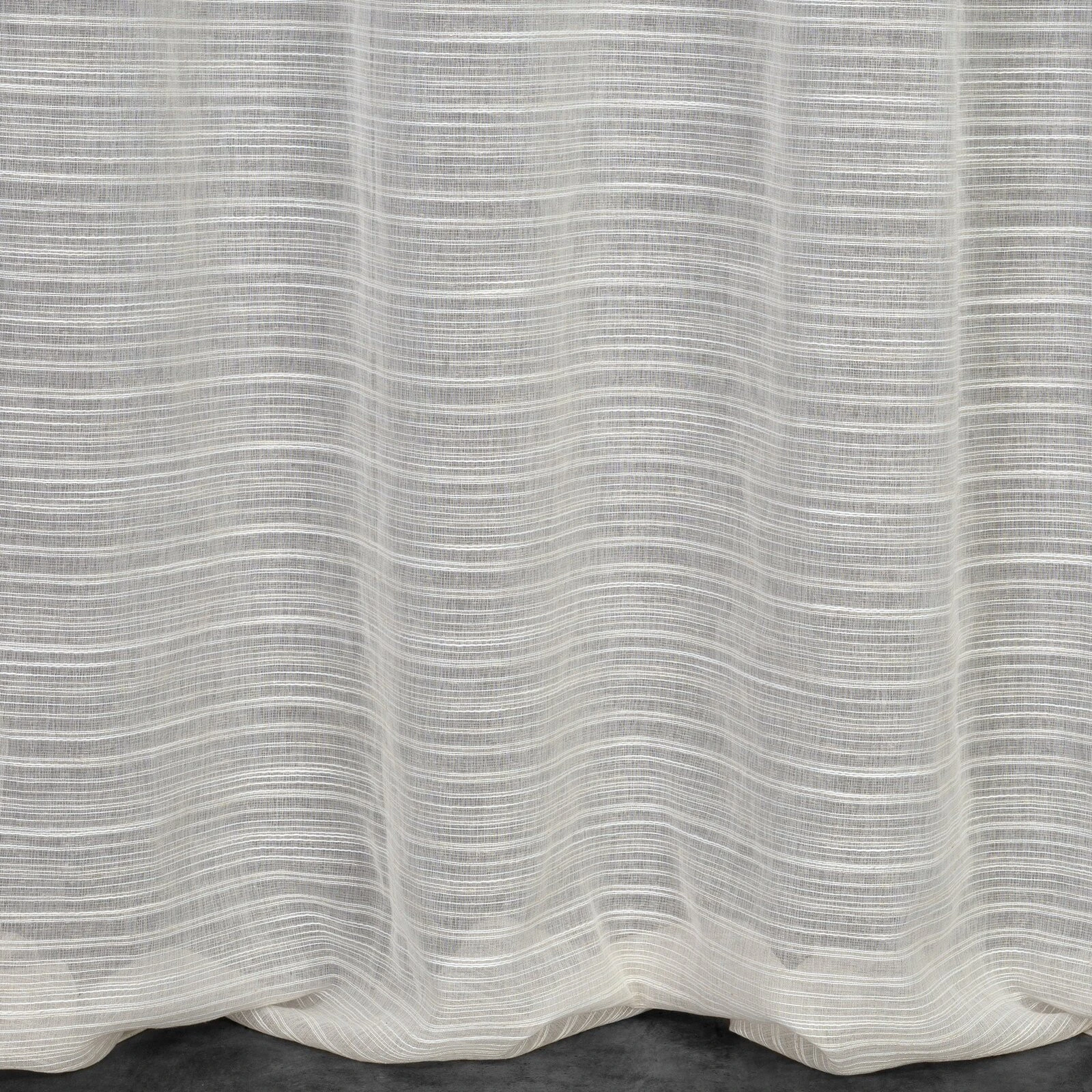 - Firana gotowa zdobiona pasami, w stylu eko szerokość: 140 cm, długość: 250 cm, kolor: beżowy, Gramatura: 110 GSM, Skład: 100% poliester
