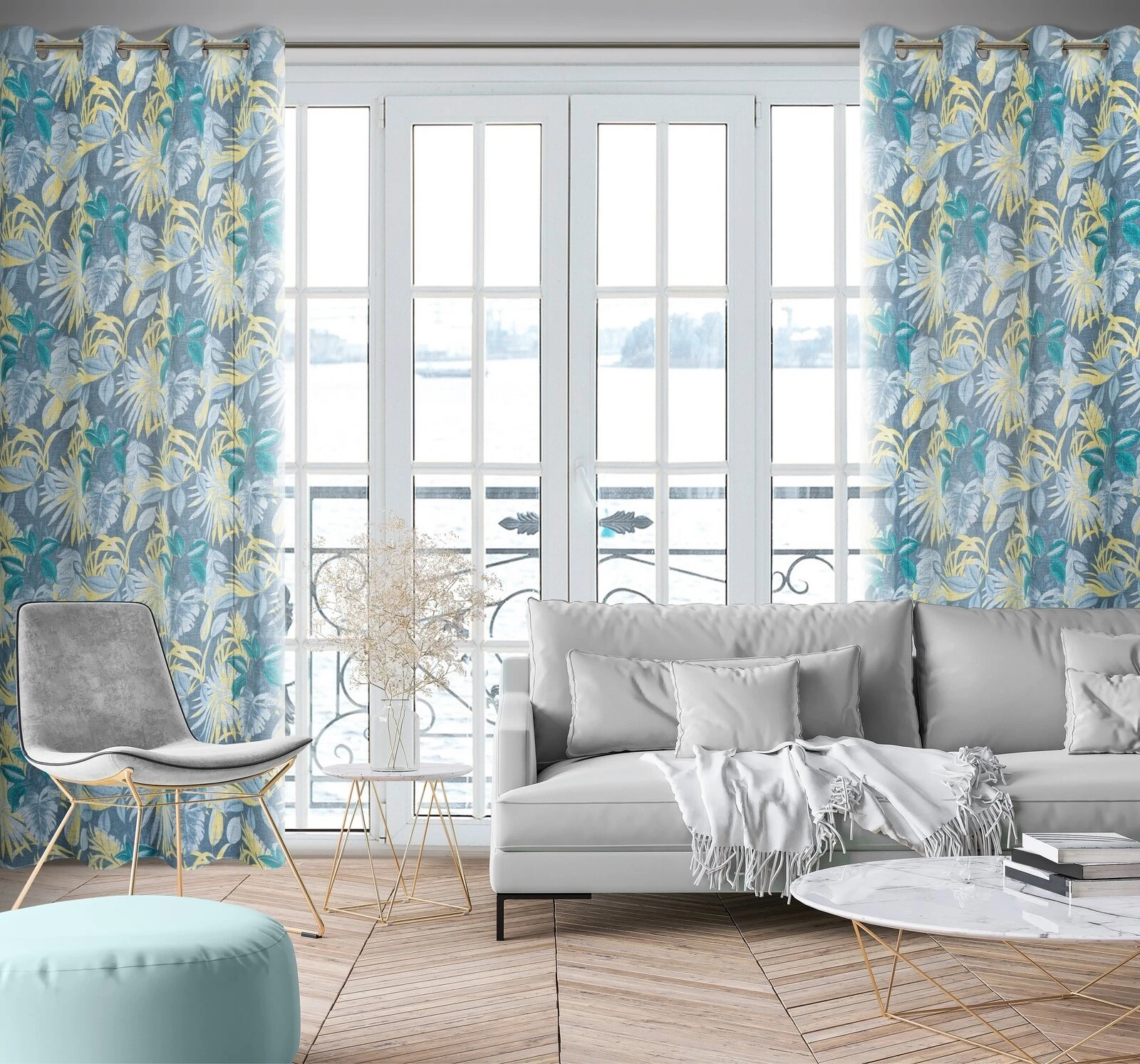 - Klasyczna zasłona z tkaniny o strukturze płótna zdobiona pastelowym nadrukiem kwiatów ogrodowych. Średni stopień zaciemnienia. Tkanina łatwa w prasowaniu. szerokość: 140 cm, długość: 250 cm, kolor: turkusowy, Gramatura: 130 GSM, Skład: 100% poliester