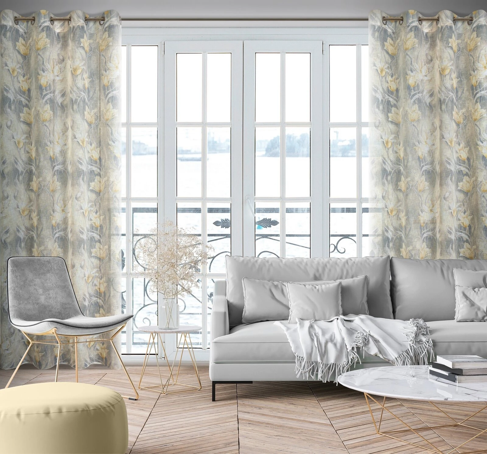 - Klasyczna zasłona z tkaniny o strukturze płótna zdobiona pastelowym nadrukiem kwiatów ogrodowych. Średni stopień zaciemnienia. Tkanina łatwa w prasowaniu. szerokość: 140 cm, długość: 250 cm, kolor: popielaty, Gramatura: 130 GSM, Skład: 100% poliester