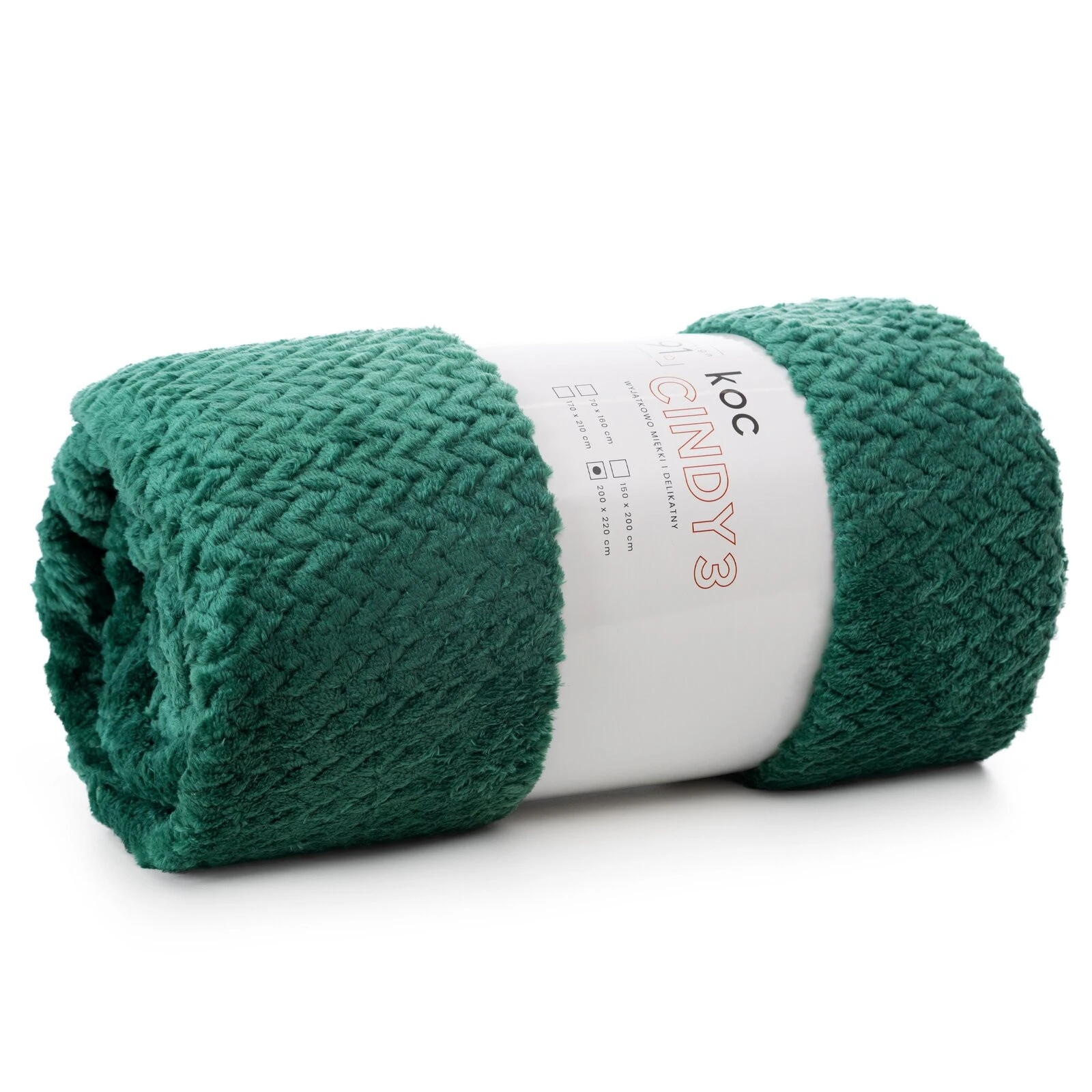 - Klasyczny koc z przyjemnego w dotyku włókna w technologii mikroflano. Jednobarwna, puszysta faktura ozdobiona jest minimalistycznym tłoczeniem w formie jodełki. szerokość: 200 cm, długość: 220 cm, kolor: ciemnozielony, Gramatura: 250GSM GSM, Skład: 100% p