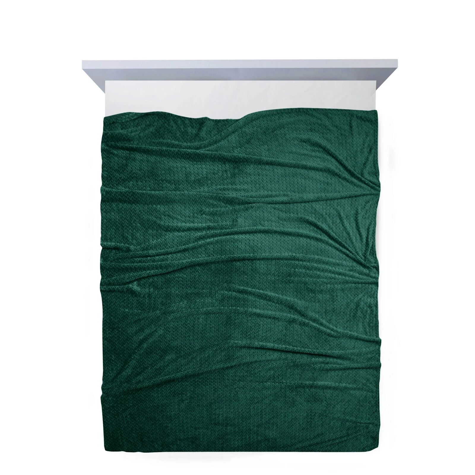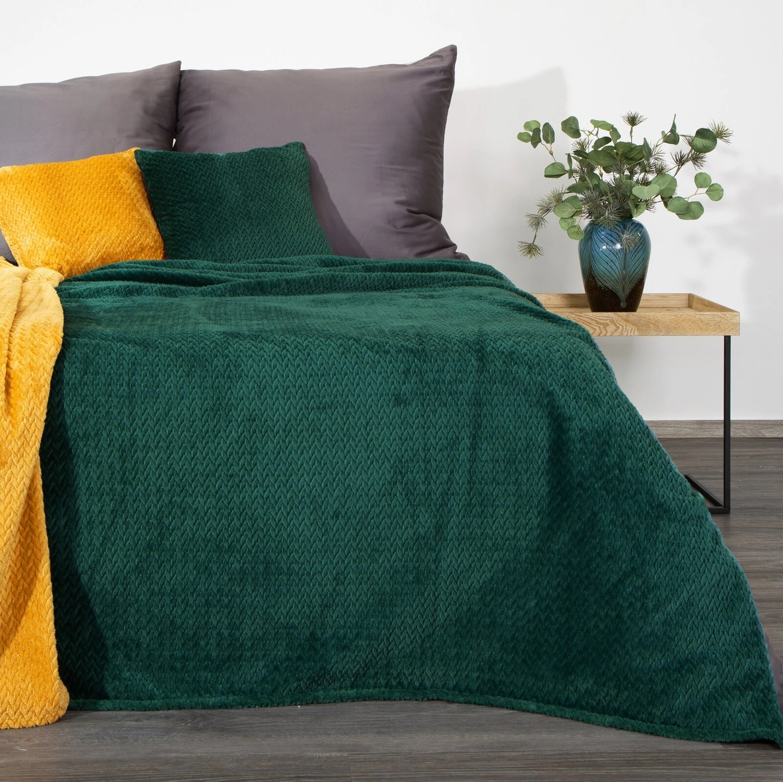 Klasyczny koc z przyjemnego w dotyku włókna w technologii mikroflano. Jednobarwna, puszysta faktura ozdobiona jest minimalistycznym tłoczeniem w formie jodełki. szerokość: 200 cm, długość: 220 cm, kolor: ciemnozielony, Gramatura: 250GSM GSM, Skład: 100% poliester