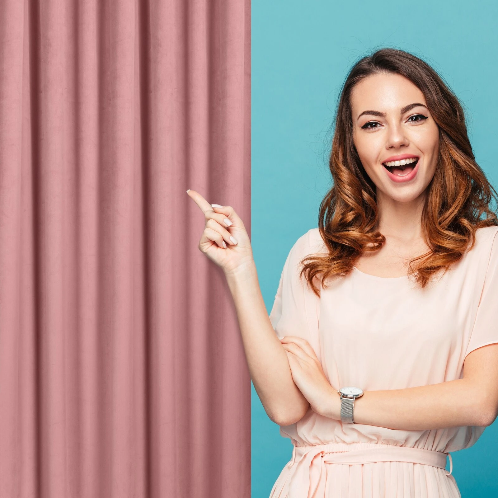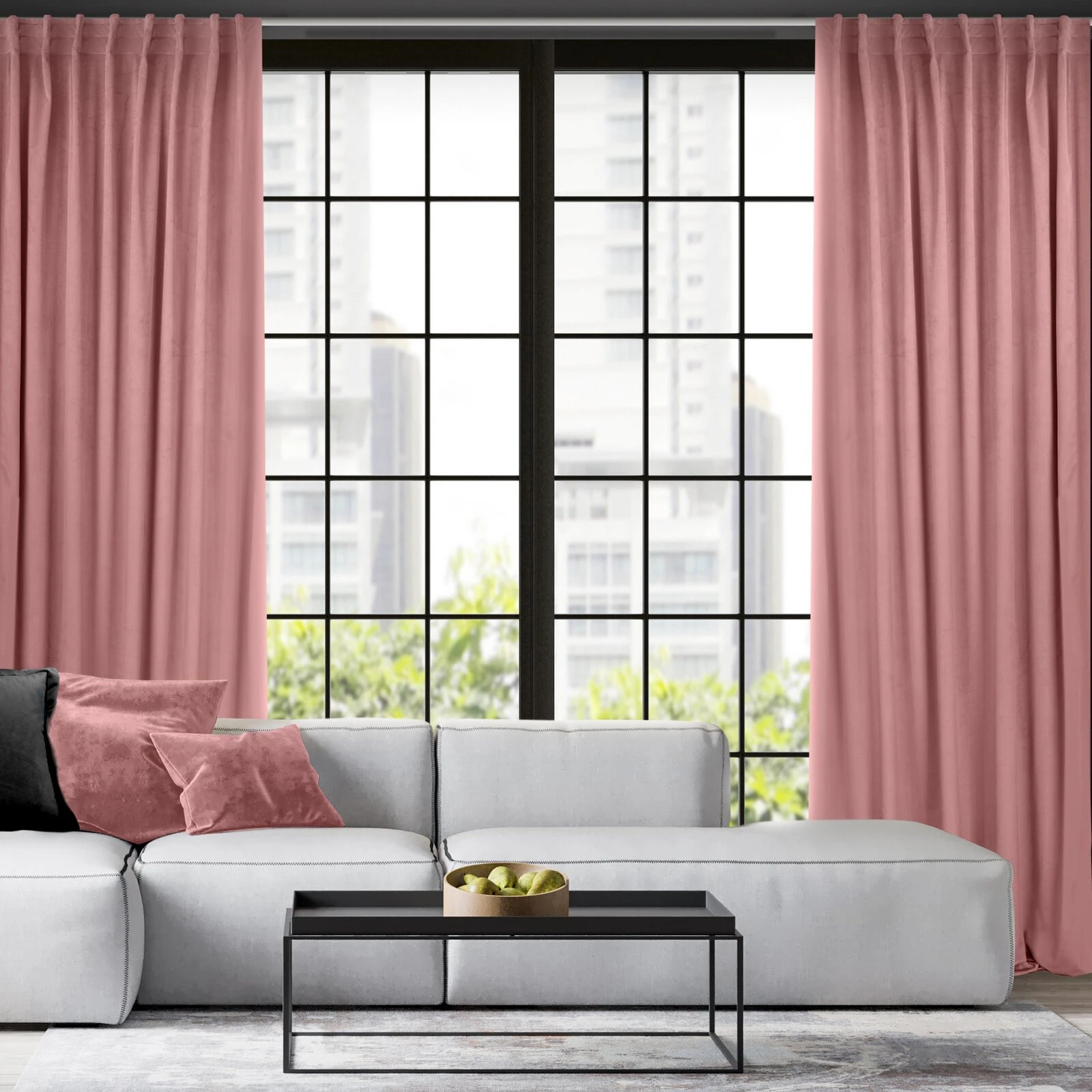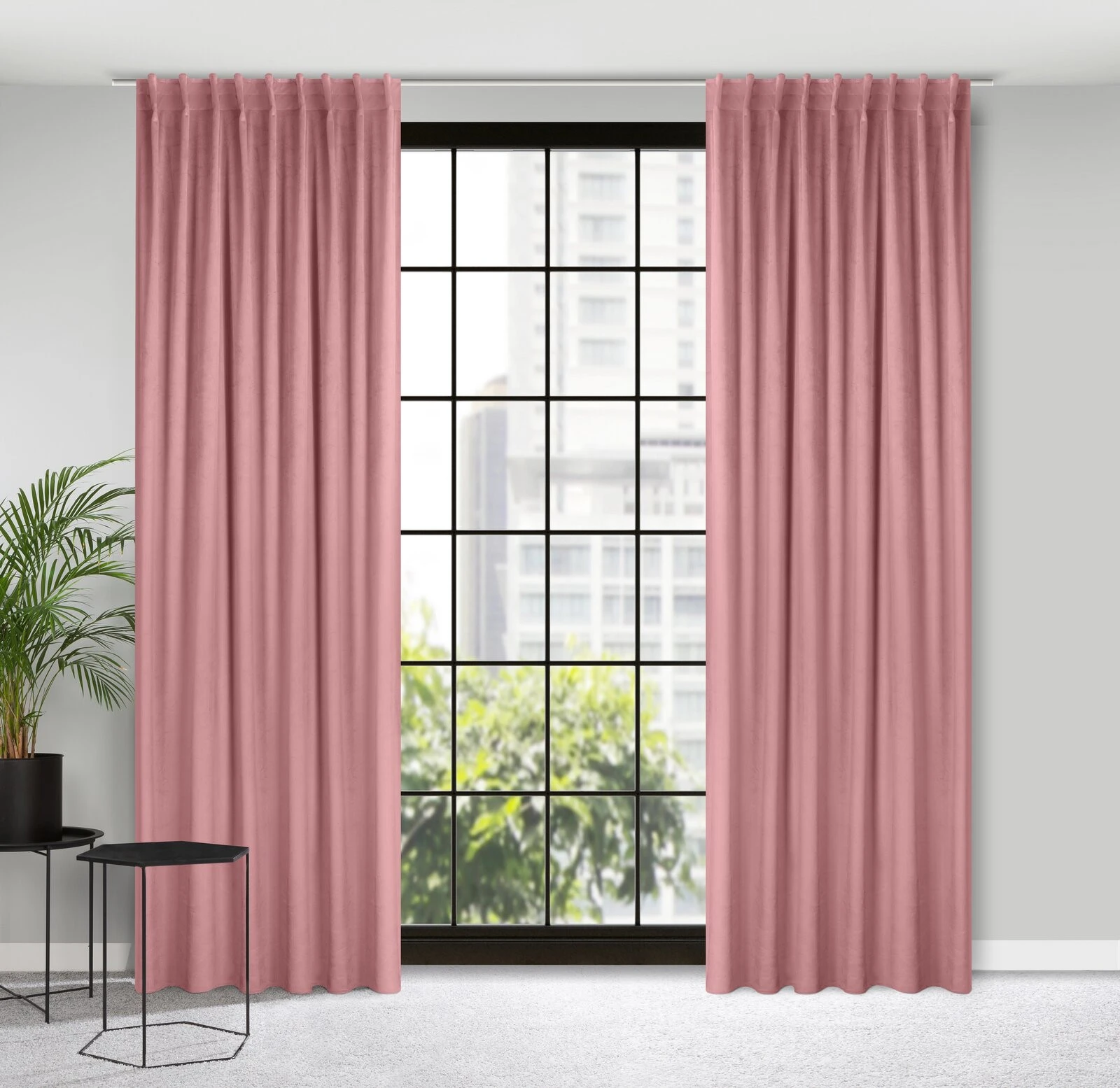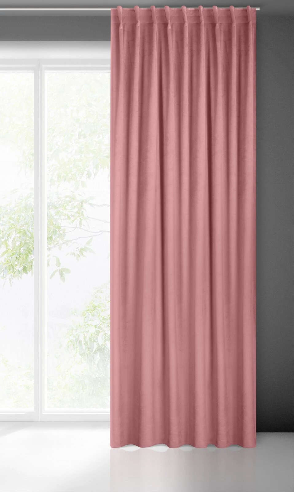 - Zasłona welwetowa, jednokolorowa z taśmą również do szyn sufitowych szerokość: 140 cm, długość: 300 cm, kolor: różowy, Gramatura: 200 GSM, Skład: 100% poliester