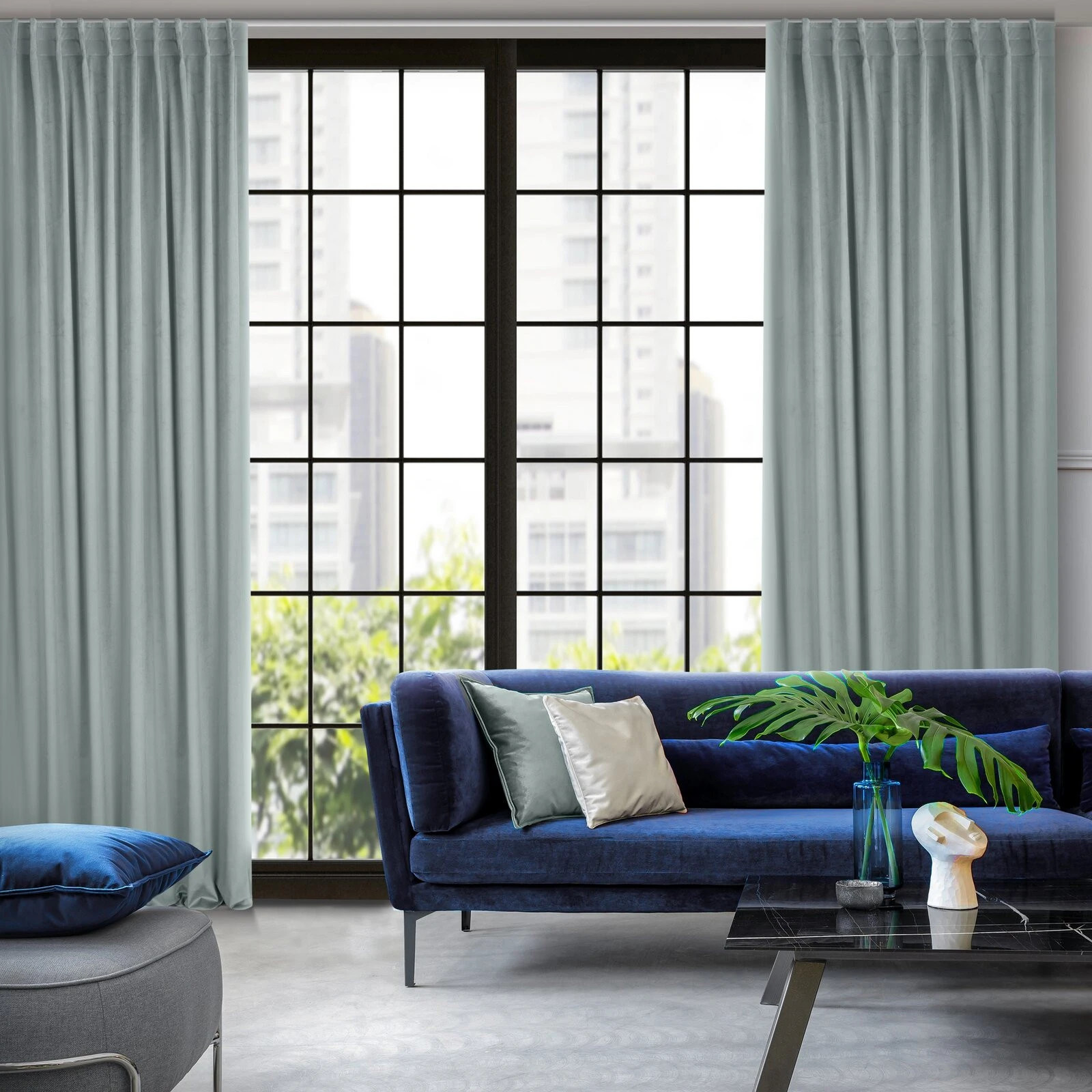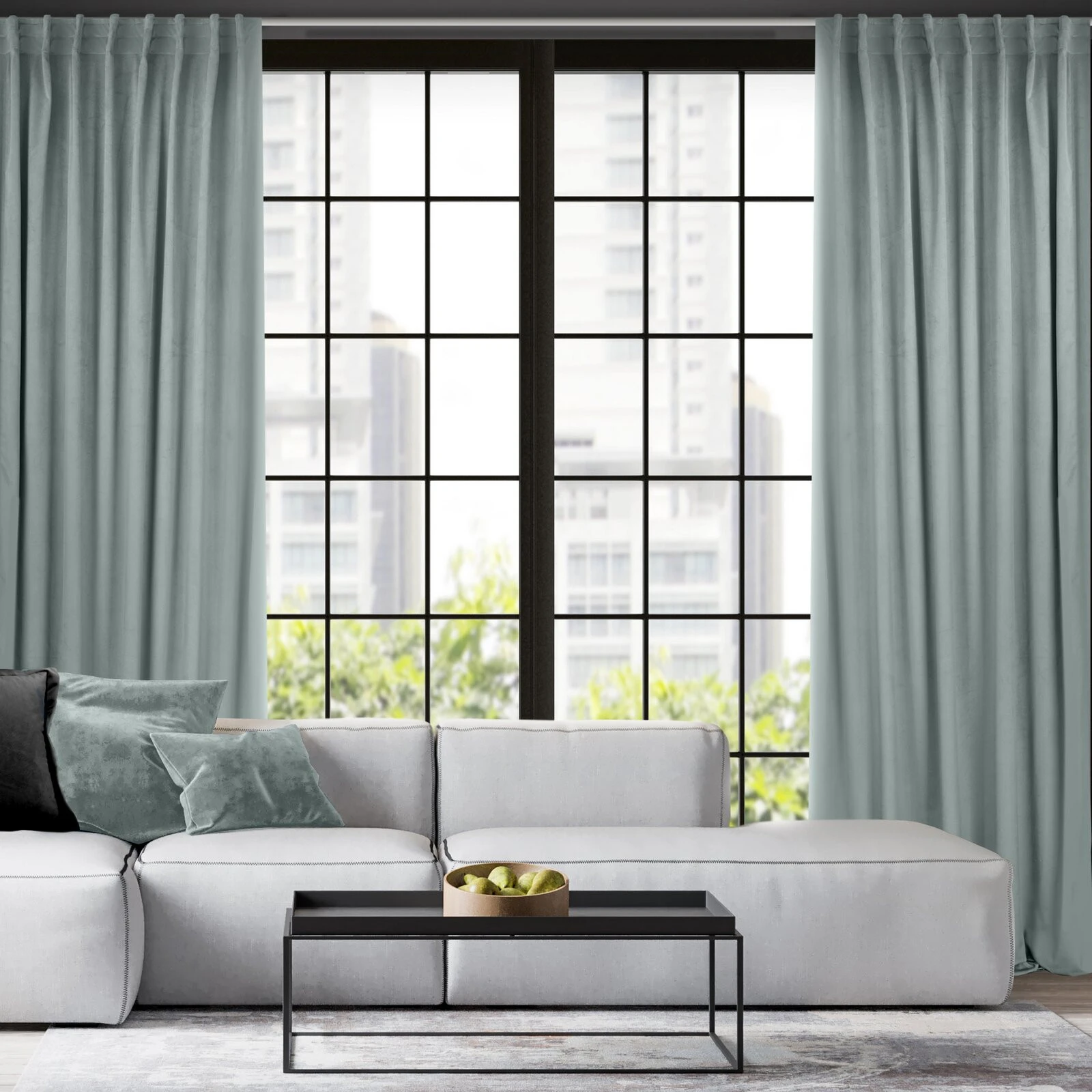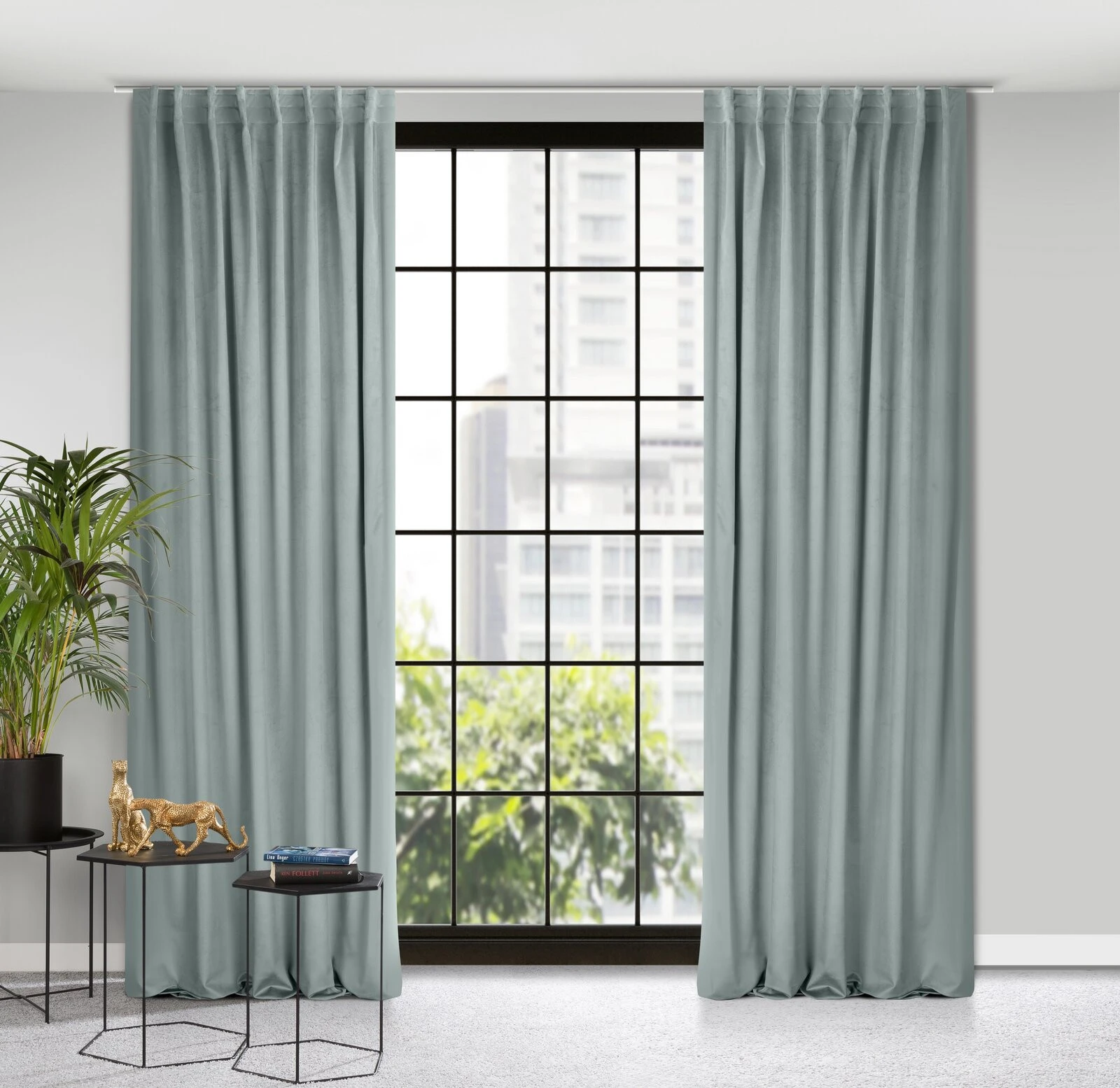 - Zasłona welwetowa, jednokolorowa z taśmą również do szyn sufitowych szerokość: 140 cm, długość: 300 cm, kolor: szary, Gramatura: 200 GSM, Skład: 100% poliester