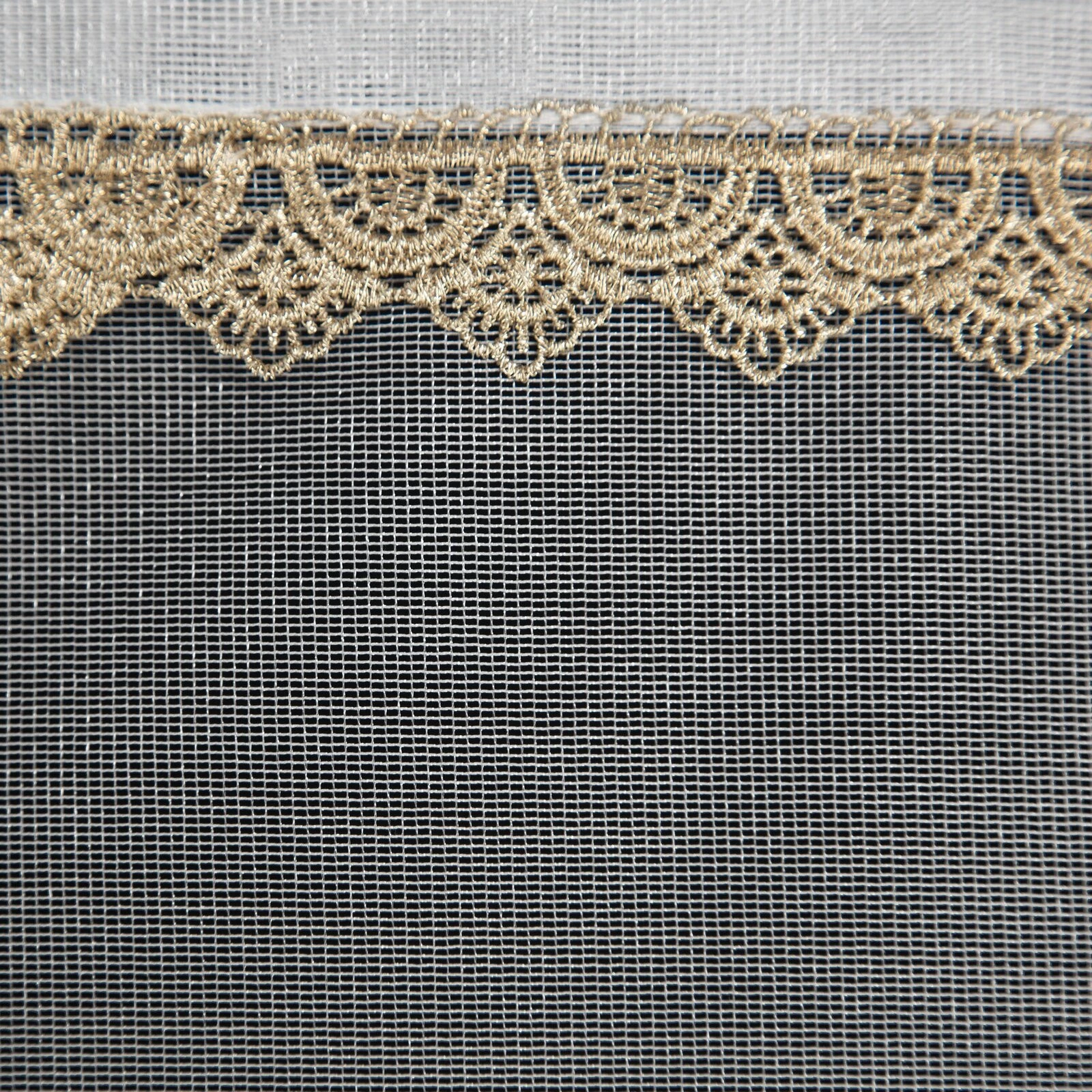 - Firana gotowa z ozdobną tasiemką szerokość: 300 cm, długość: 250 cm, kolor: biały, Gramatura: 35 GSM, Skład: 100% poliester