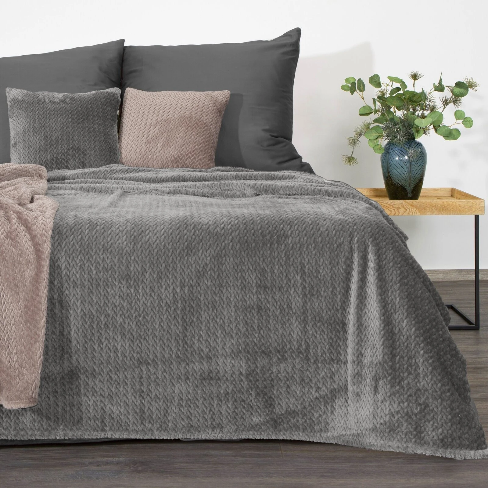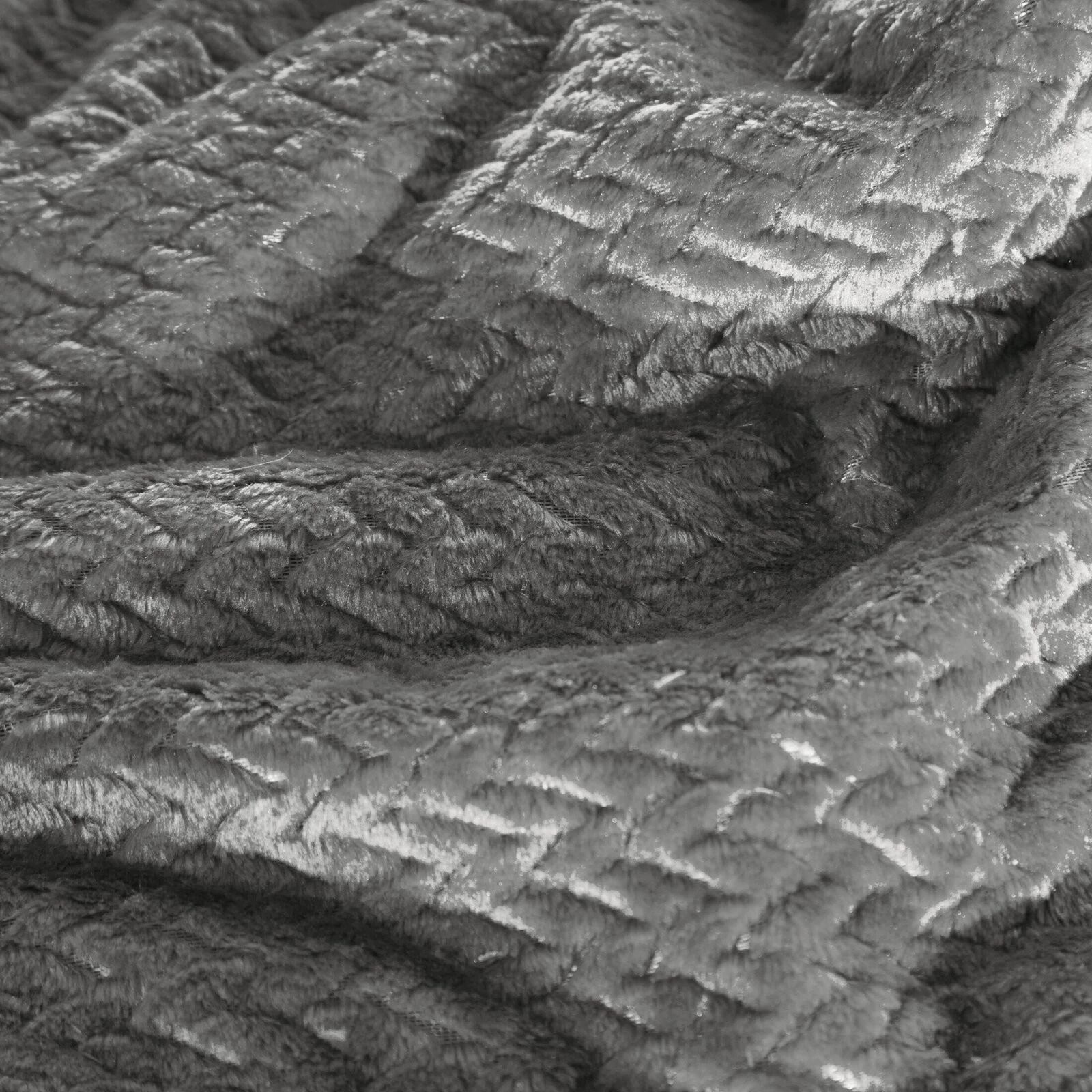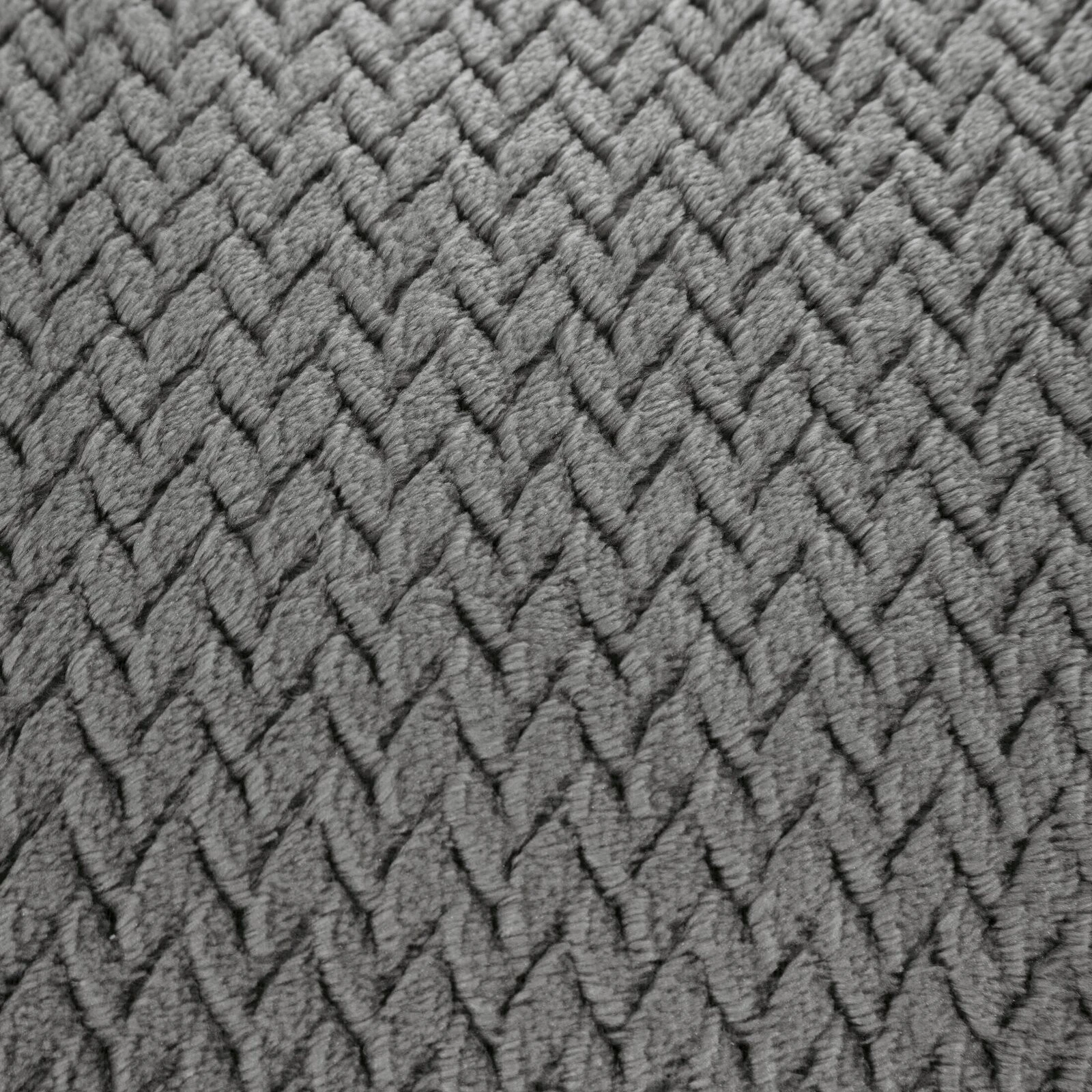 Klasyczny koc z przyjemnego w dotyku włókna w technologii mikroflano. Jednobarwna, puszysta faktura ozdobiona jest minimalistycznym tłoczeniem w formie jodełki. szerokość: 170 cm, długość: 210 cm, kolor: grafitowy, Gramatura: 250GSM GSM, Skład: 100% poliester