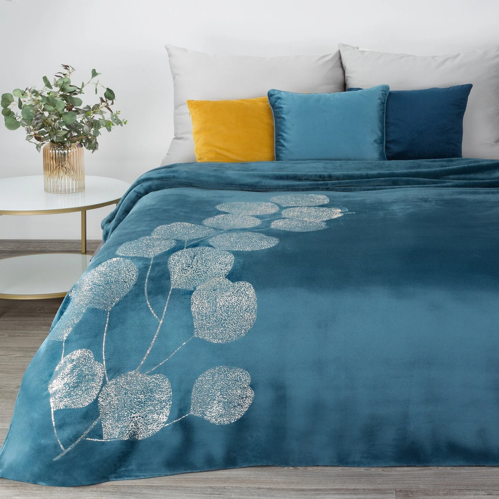 Koc flano bardzo miękki w dotyku z błyszczącym nadrukiem szerokość: 150 cm, długość: 200 cm, kolor: niebieski, Gramatura: 250 GSM, Skład: 100% poliester