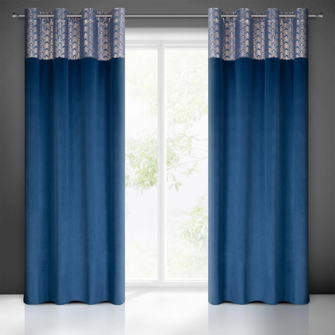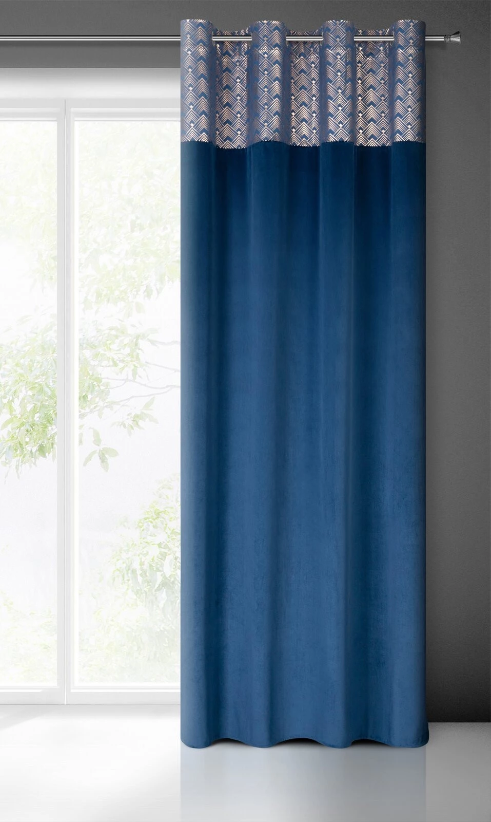 - Zasłona welwetowa z szampańskim nadrukiem szerokość: 140 cm, długość: 250 cm, kolor: granatowy, Gramatura: 200 GSM, Skład: 100% poliester