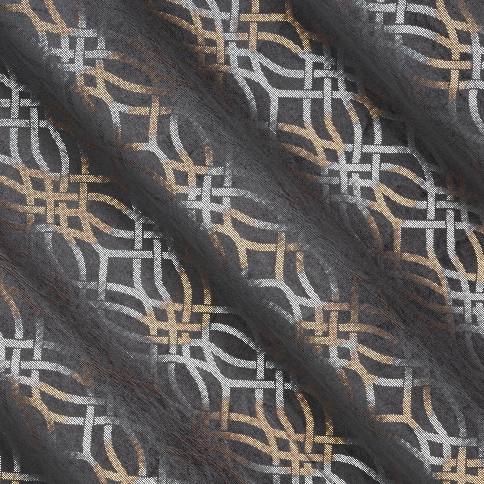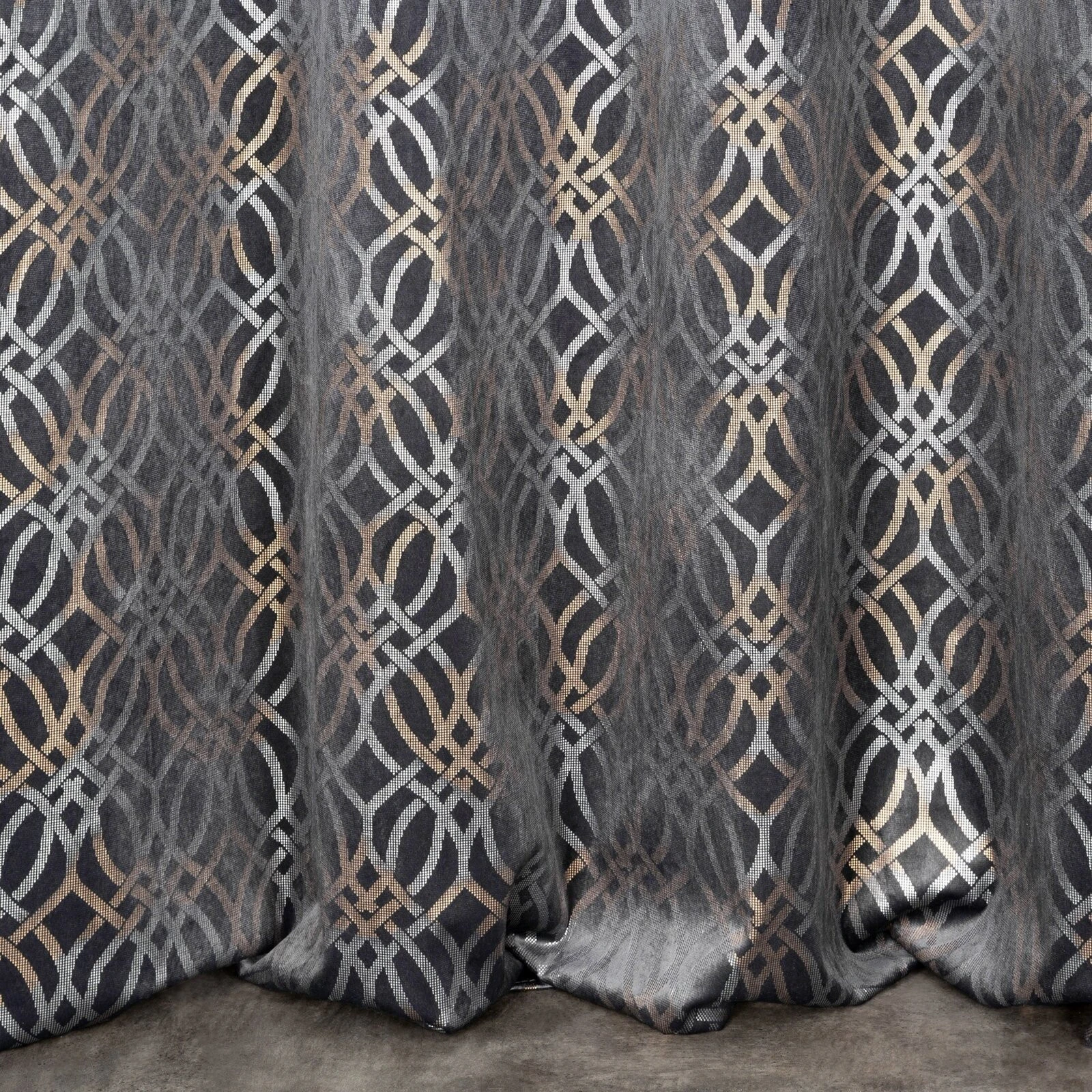 Zasłona welwetowa z szampańskim i srebrnym nadrukiem szerokość: 140 cm, długość: 250 cm, kolor: stalowy, Gramatura: 200 GSM, Skład: 100% poliester