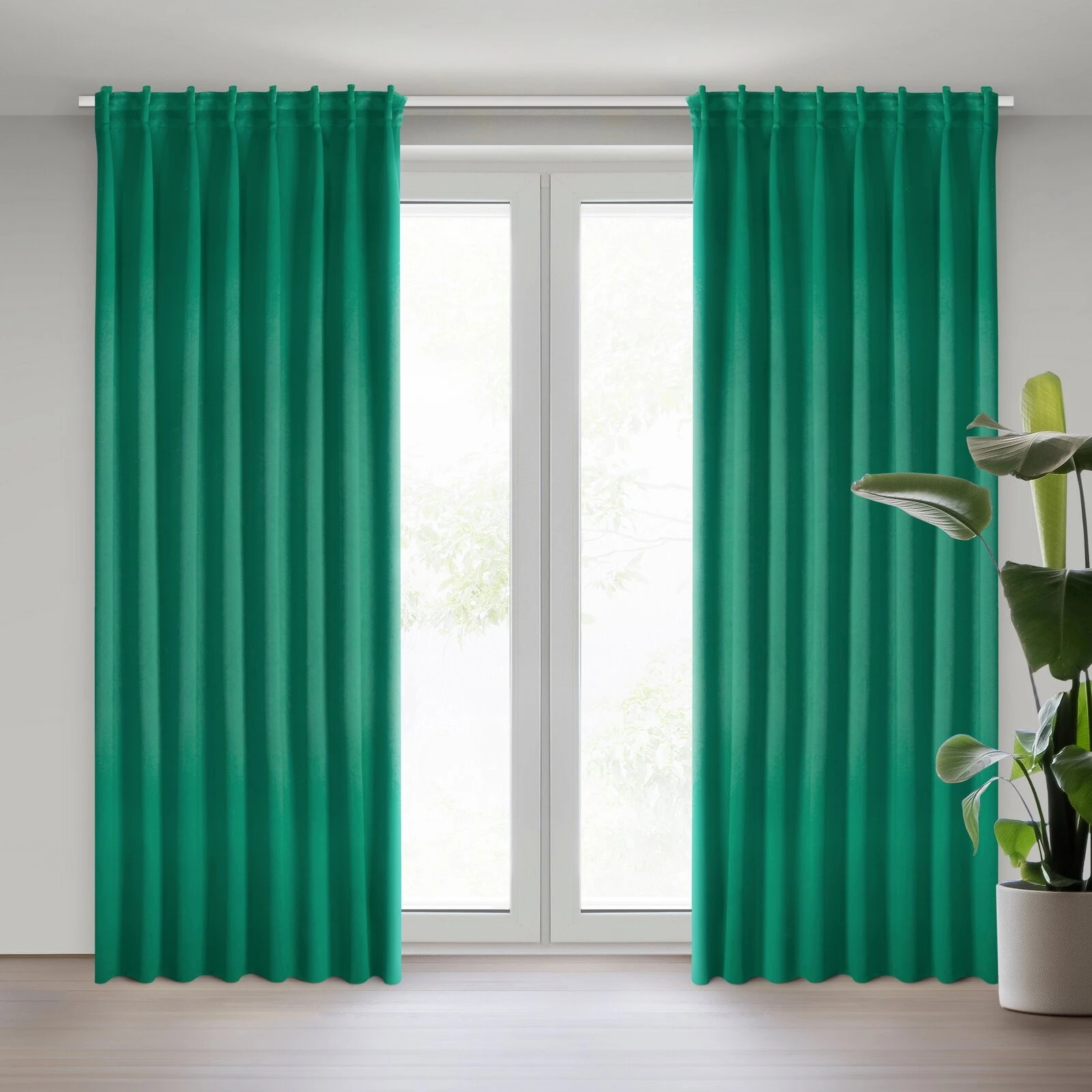 - Zasłona zaciemniająca jednokolorowa z taśmą do szyn sufitowych szerokość: 140 cm, długość: 300 cm, kolor: ciemnozielony, Gramatura: 210 GSM, Skład: 100% poliester