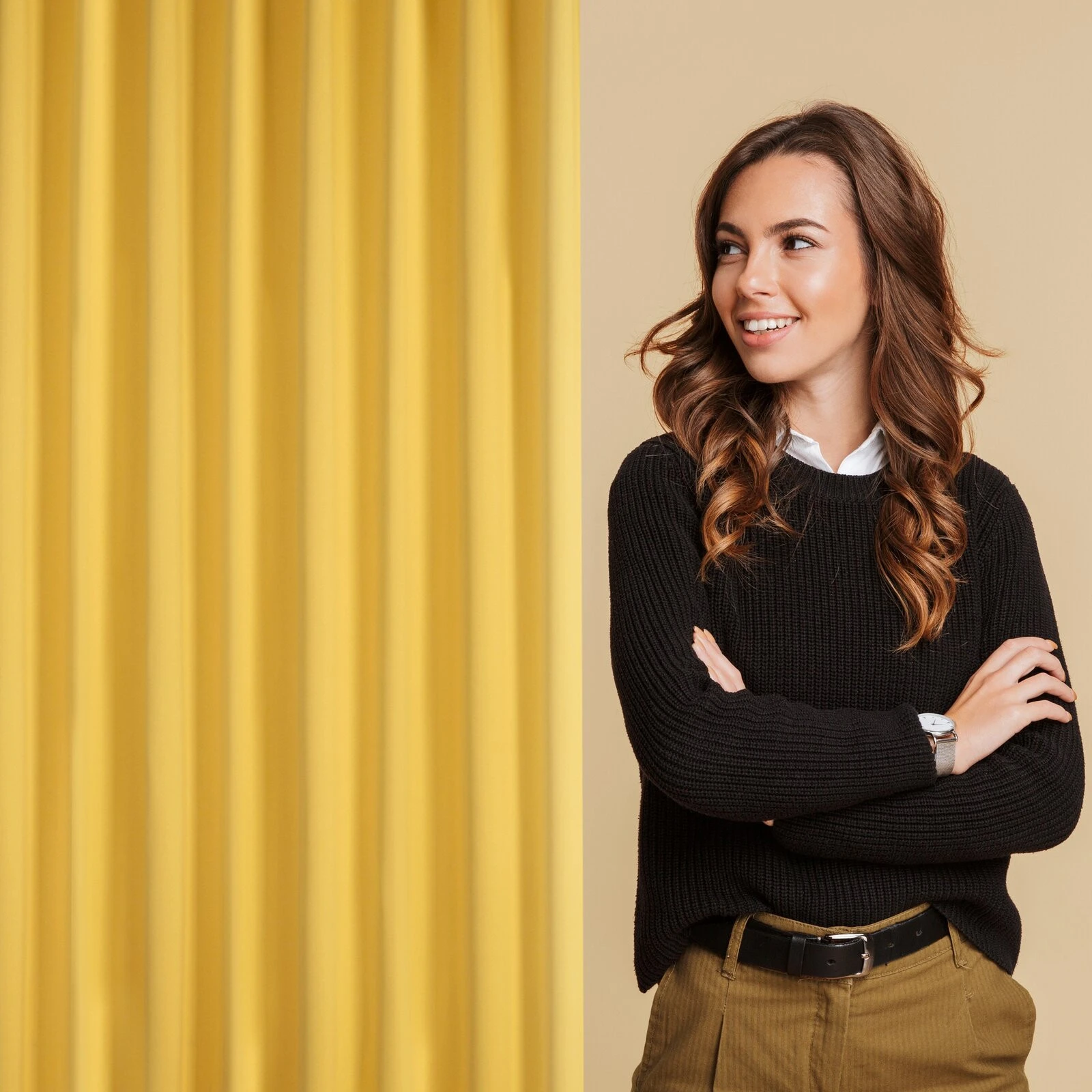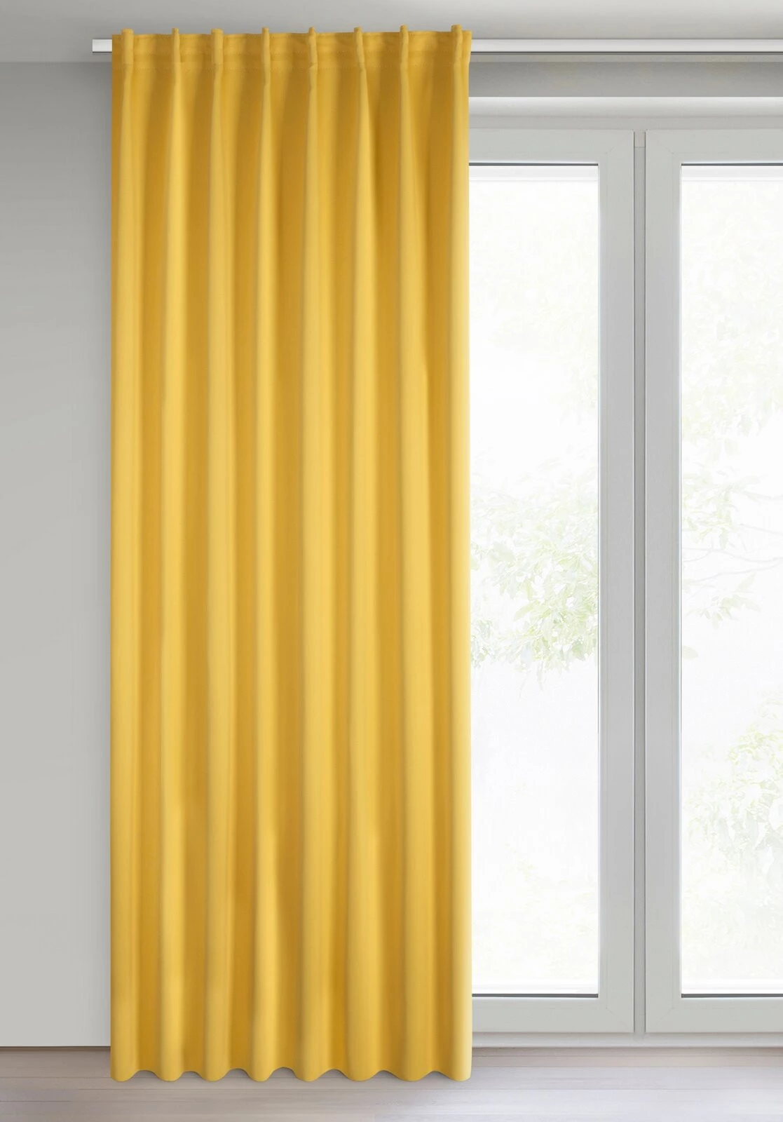 - Zasłona zaciemniająca jednokolorowa z taśmą do szyn sufitowych szerokość: 140 cm, długość: 300 cm, kolor: musztardowy, Gramatura: 210 GSM, Skład: 100% poliester