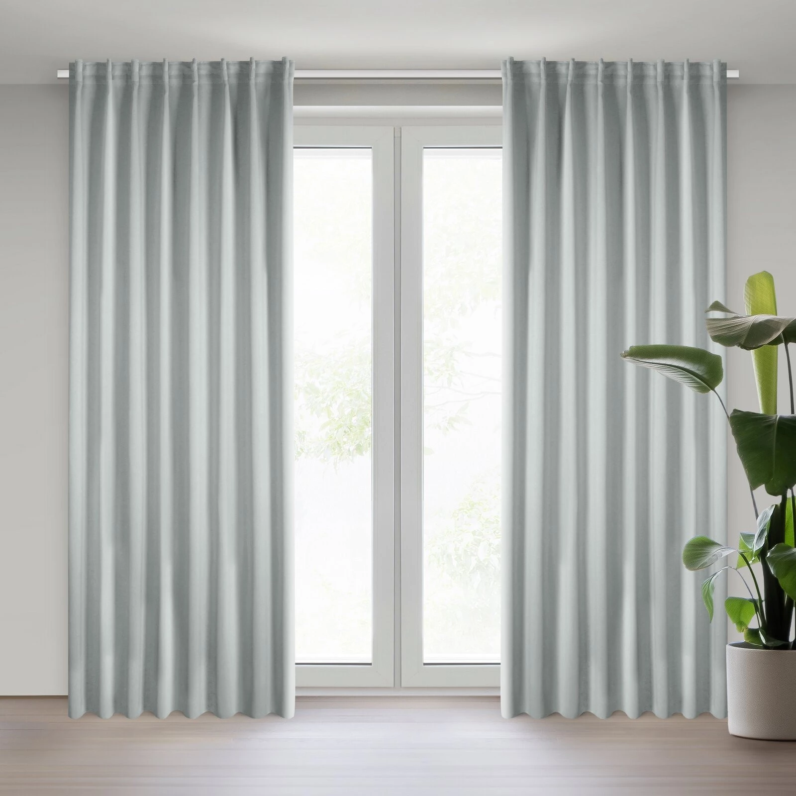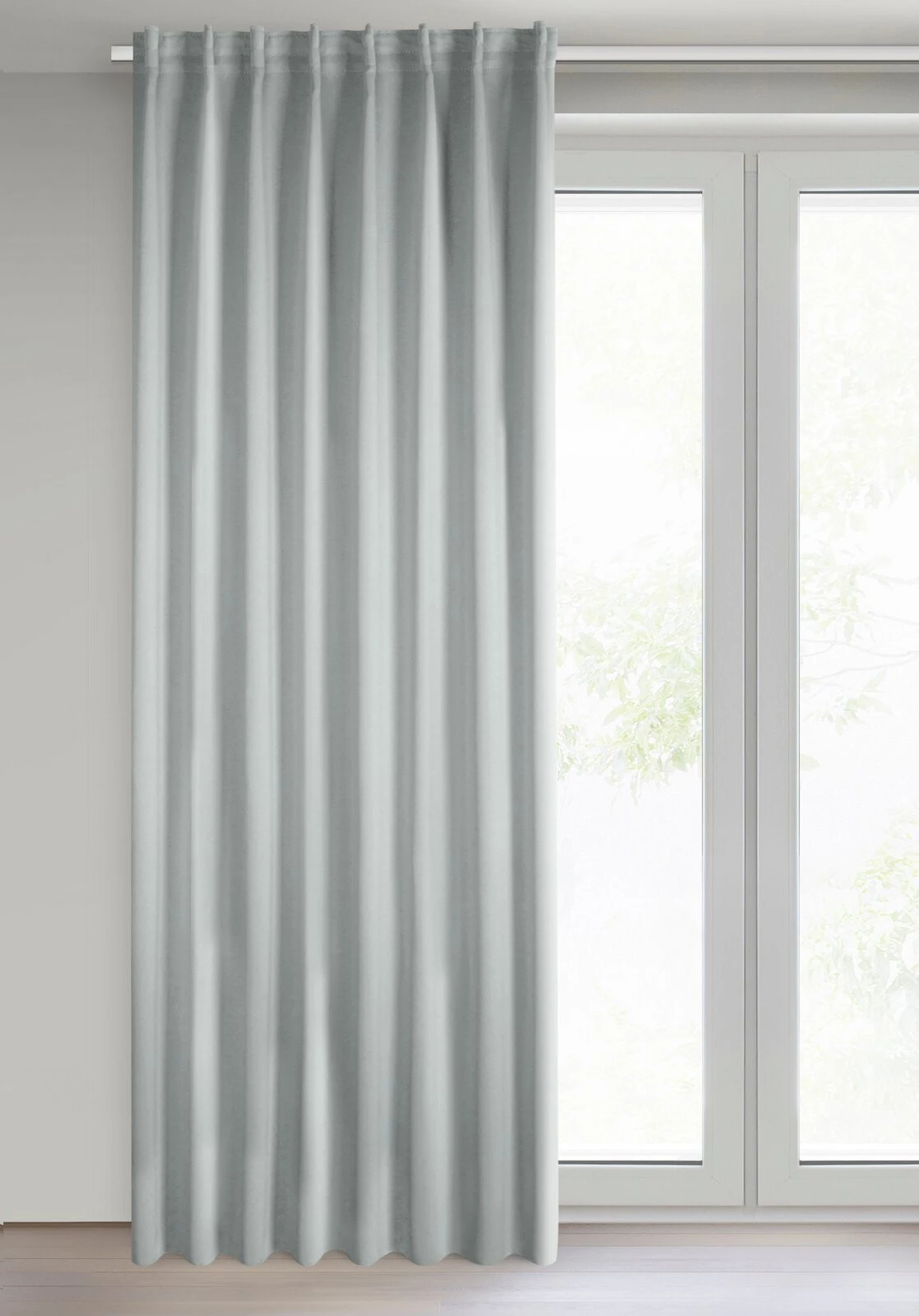 - Zasłona zaciemniająca jednokolorowa z taśmą do szyn sufitowych szerokość: 140 cm, długość: 300 cm, kolor: srebrny, Gramatura: 210 GSM, Skład: 100% poliester