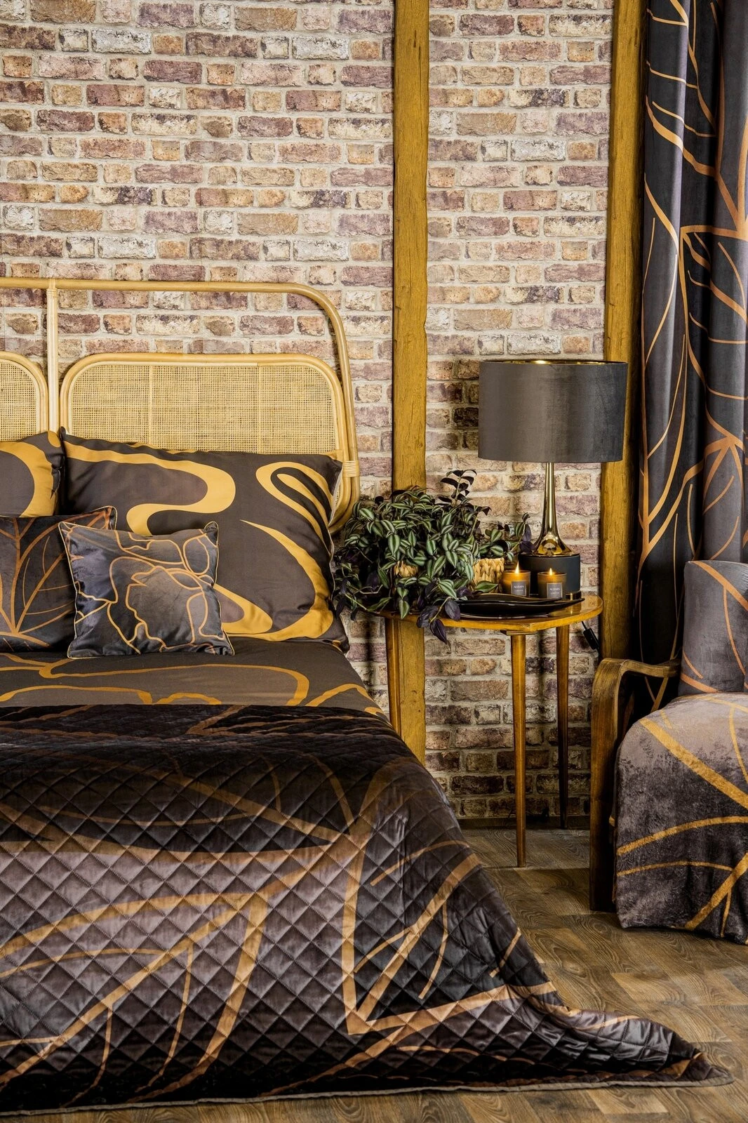 Komplet pościeli z naturalnego włókna tencel z nadrukiem panelowym szerokość: 160 cm, długość: 200 cm, kolor: brązowy, Gramatura: 125 GSM, Skład: 60% lyocell (tencel), 40% bawełna