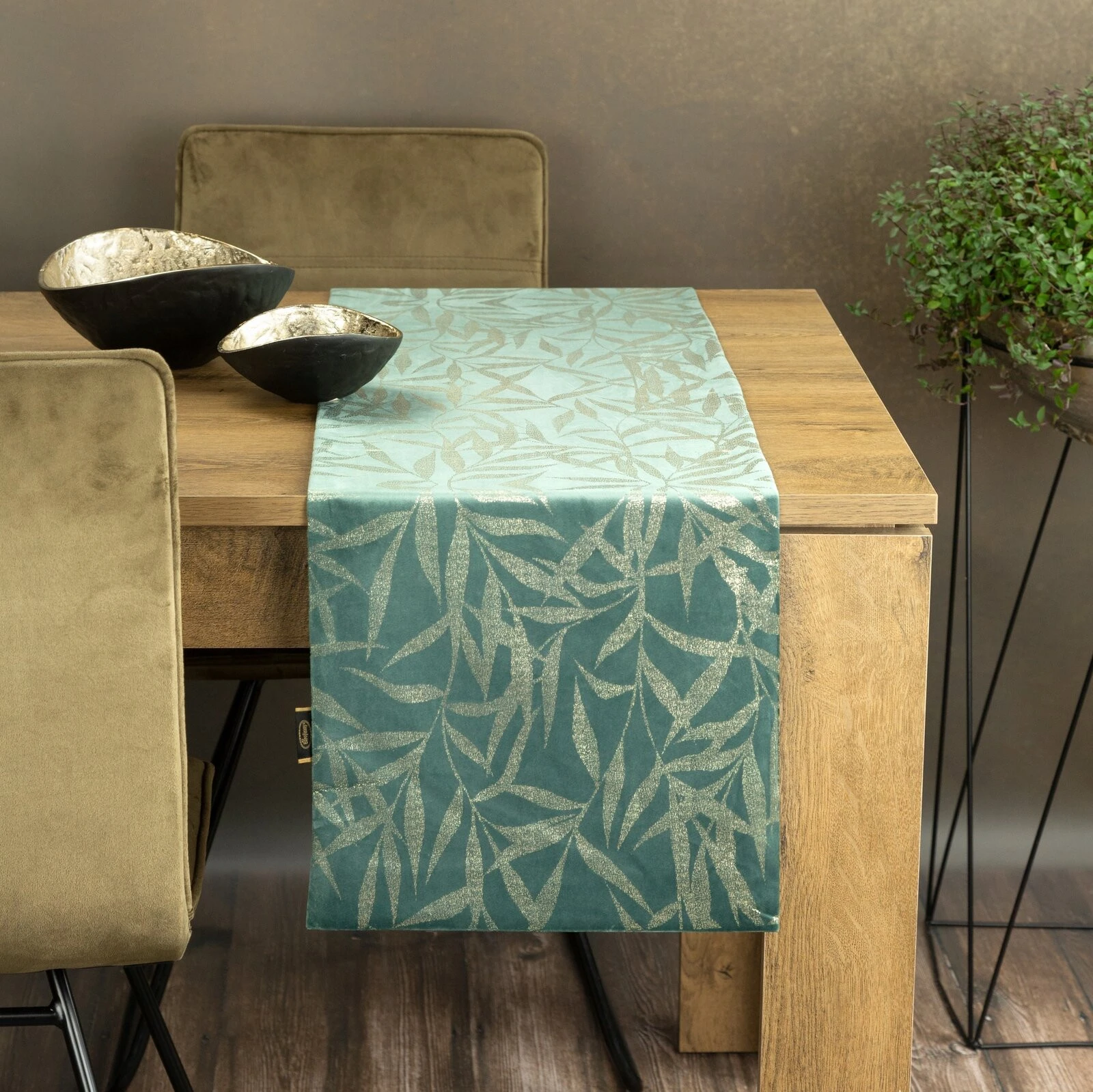 - Szarfa velvetowa z zdobiona szampańskim nadrukiem szerokość: 35 cm, długość: 140 cm, kolor: ciemnomiętowy, Gramatura: 250 GSM GSM, Skład: 100% poliester