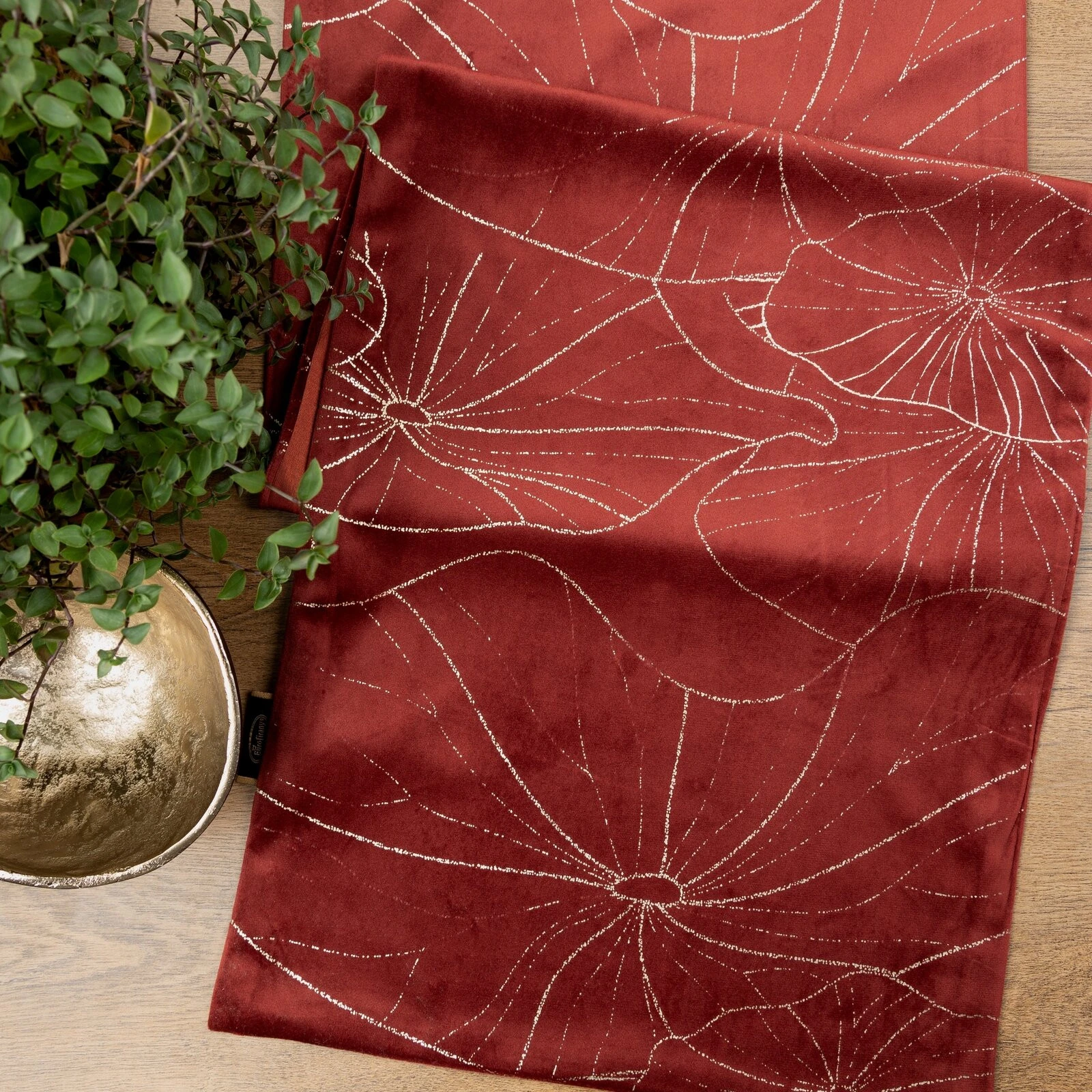 Szarfa velvetowa z zdobiona szampańskim nadrukiem szerokość: 35 cm, długość: 140 cm, kolor: ceglasty, Gramatura: 250 GSM, Skład: 100% poliester