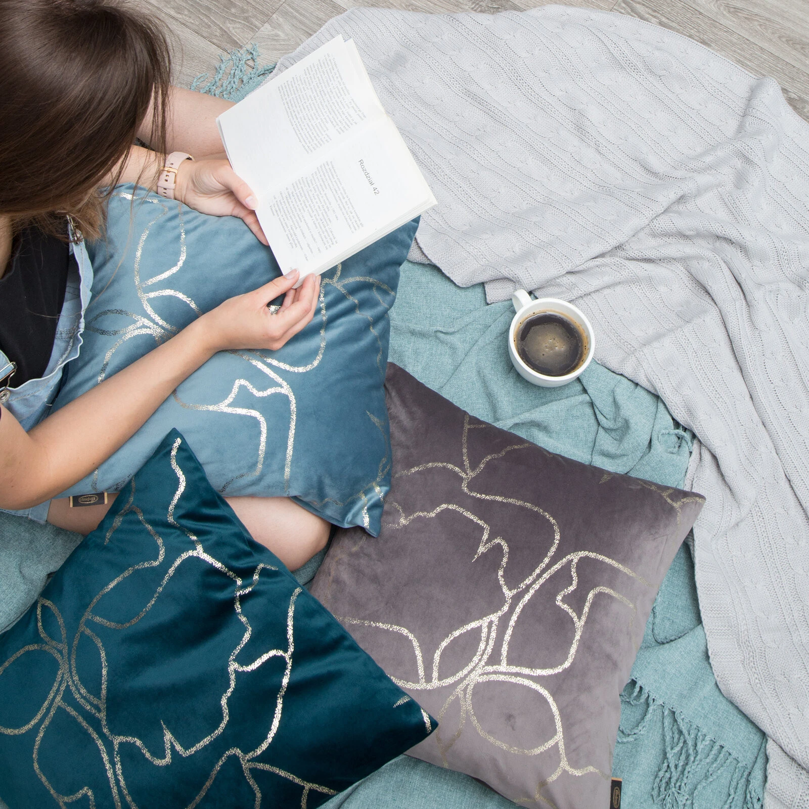 - Welwetowa poszewka z nadrukiem szerokość: 45 cm, długość: 45 cm, kolor: ciemnoturkusowy, Gramatura: 250 GSM, Skład: 100% poliester
