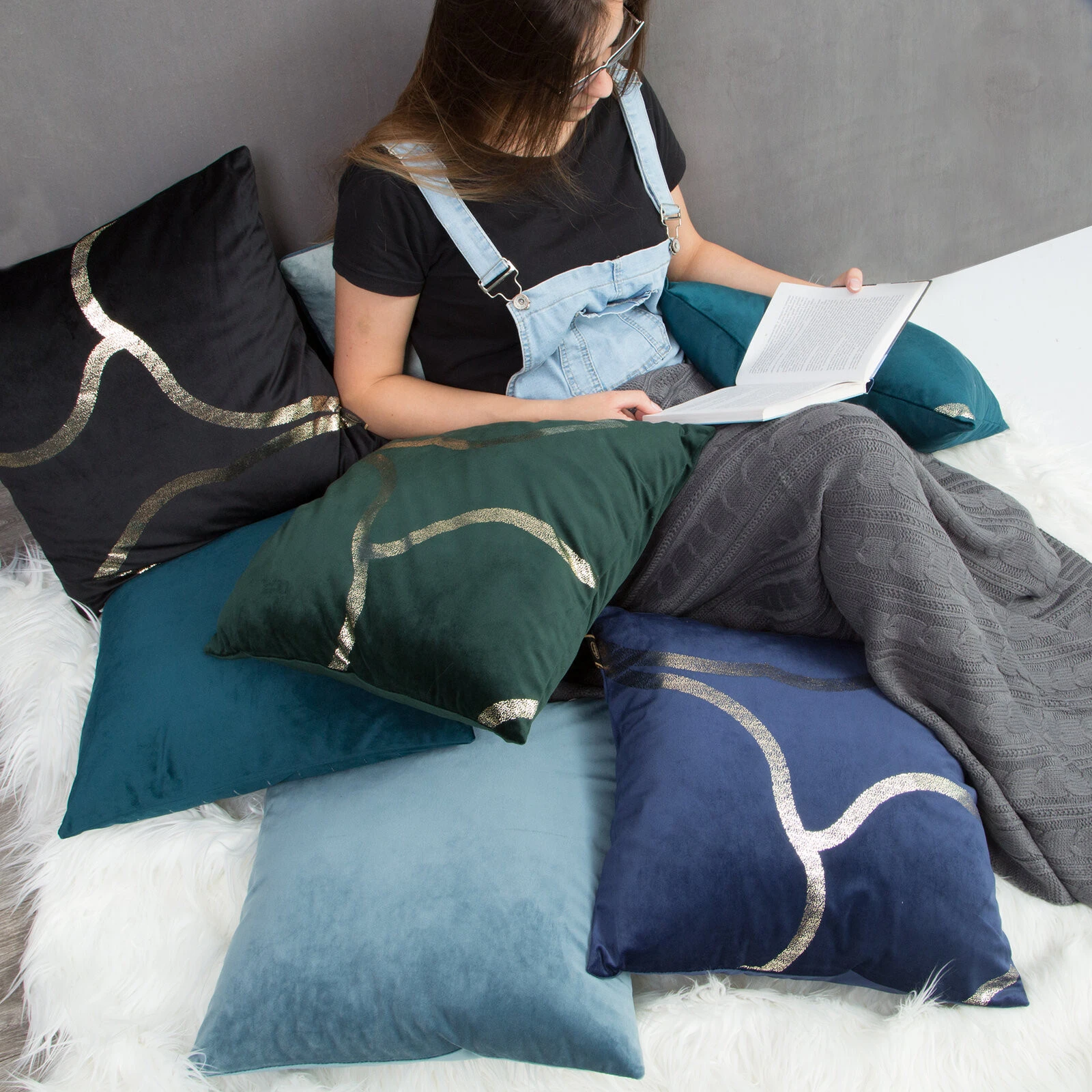 Welwetowa poszewka z nadrukiem szerokość: 45 cm, długość: 45 cm, kolor: niebieski, Gramatura: 250 GSM, Skład: 100% poliester