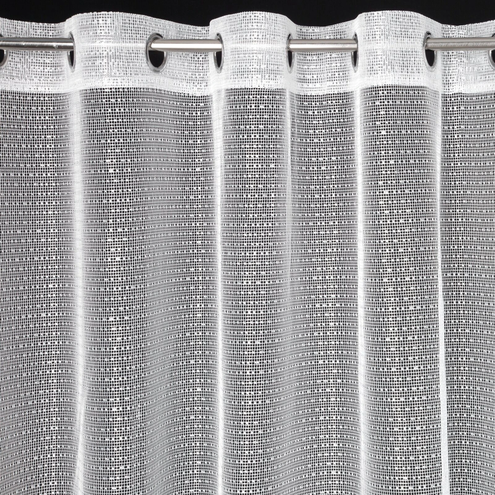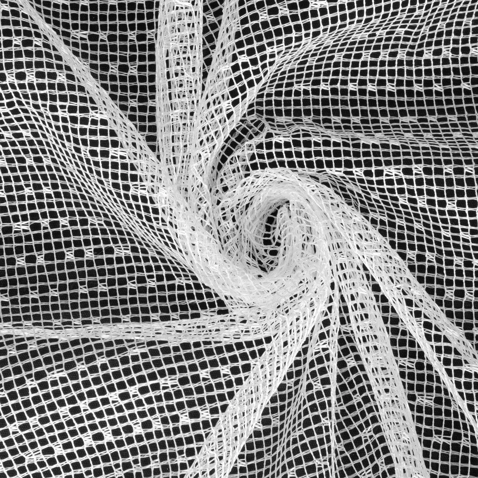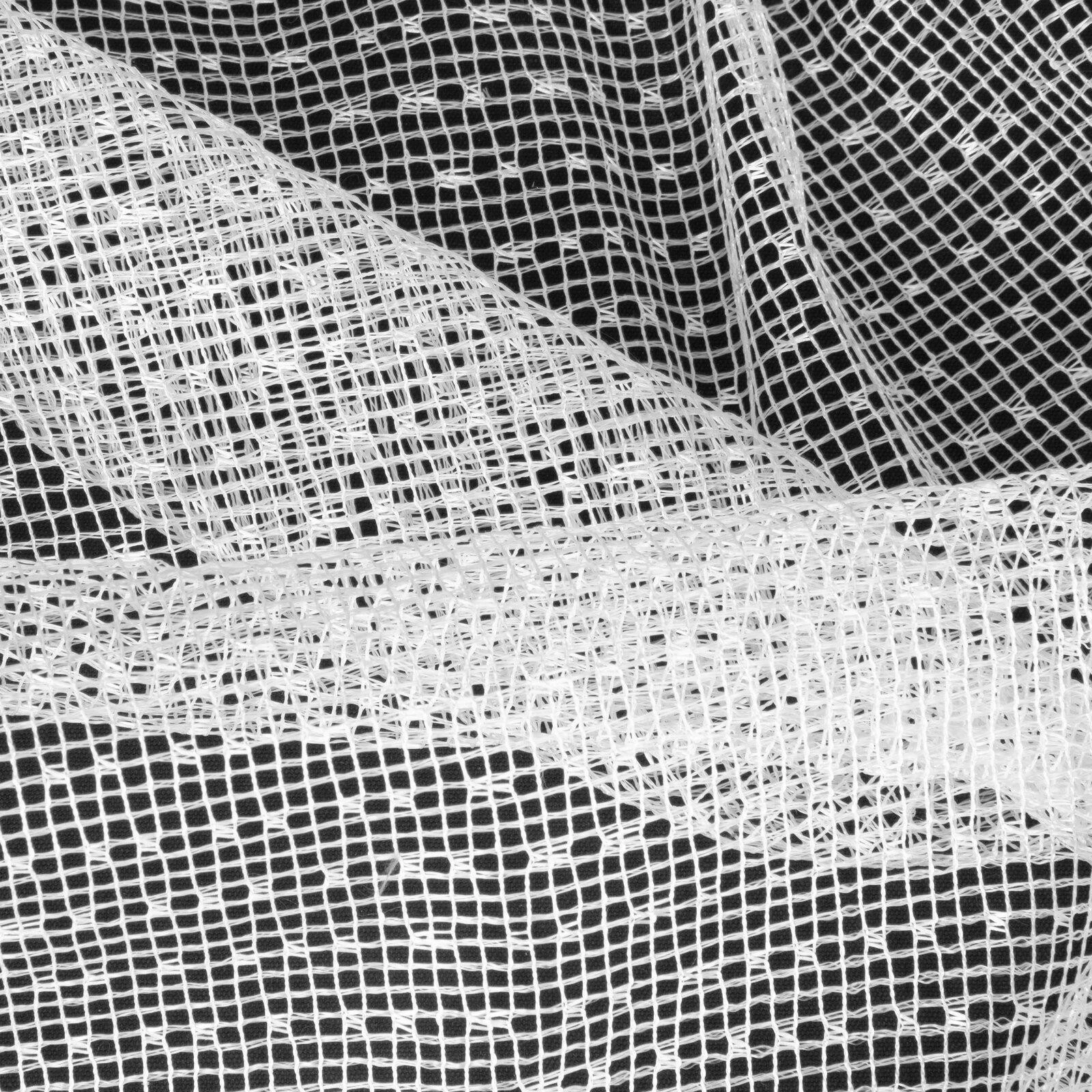 Bardzo delikatna firana z tkaniny o strukturze z subtelnej siateczki z lekkim połyskiem. Miękka tkanina doskonale przepuszcza światło i gwarantuje prywatność. szerokość: 400 cm, długość: 250 cm, kolor: biały, Gramatura: 60 GSM, Skład: 100% poliester