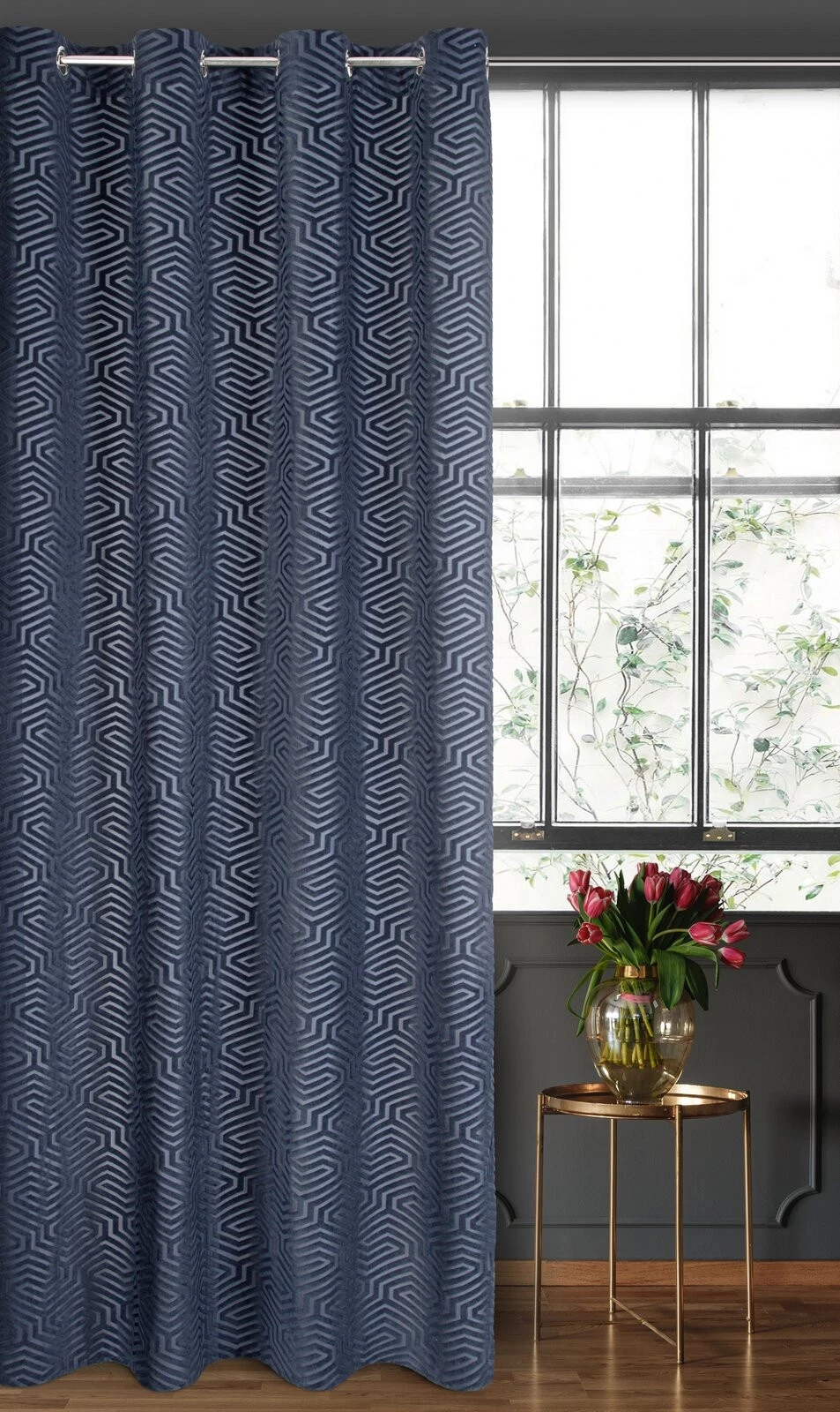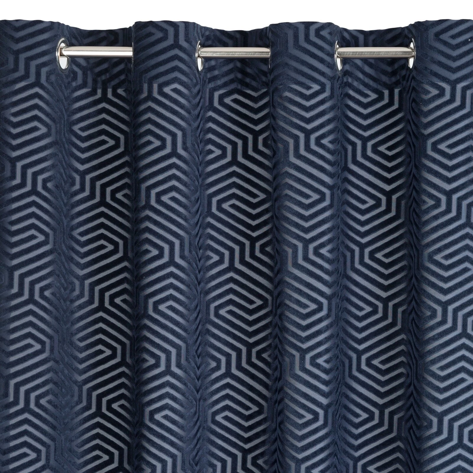 - Zasłona z welwetu żakardowego z motywem geometrycznym szerokość: 140 cm, długość: 250 cm, kolor: granatowy, Gramatura: 320 GSM, Skład: 100% poliester