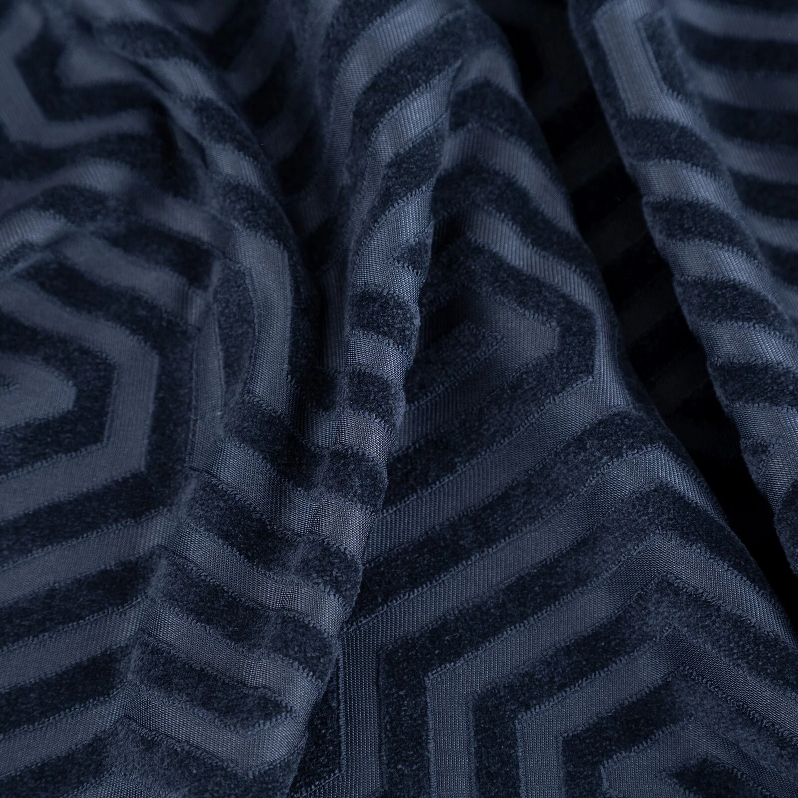 Zasłona z welwetu żakardowego z motywem geometrycznym szerokość: 140 cm, długość: 250 cm, kolor: granatowy, Gramatura: 320 GSM, Skład: 100% poliester