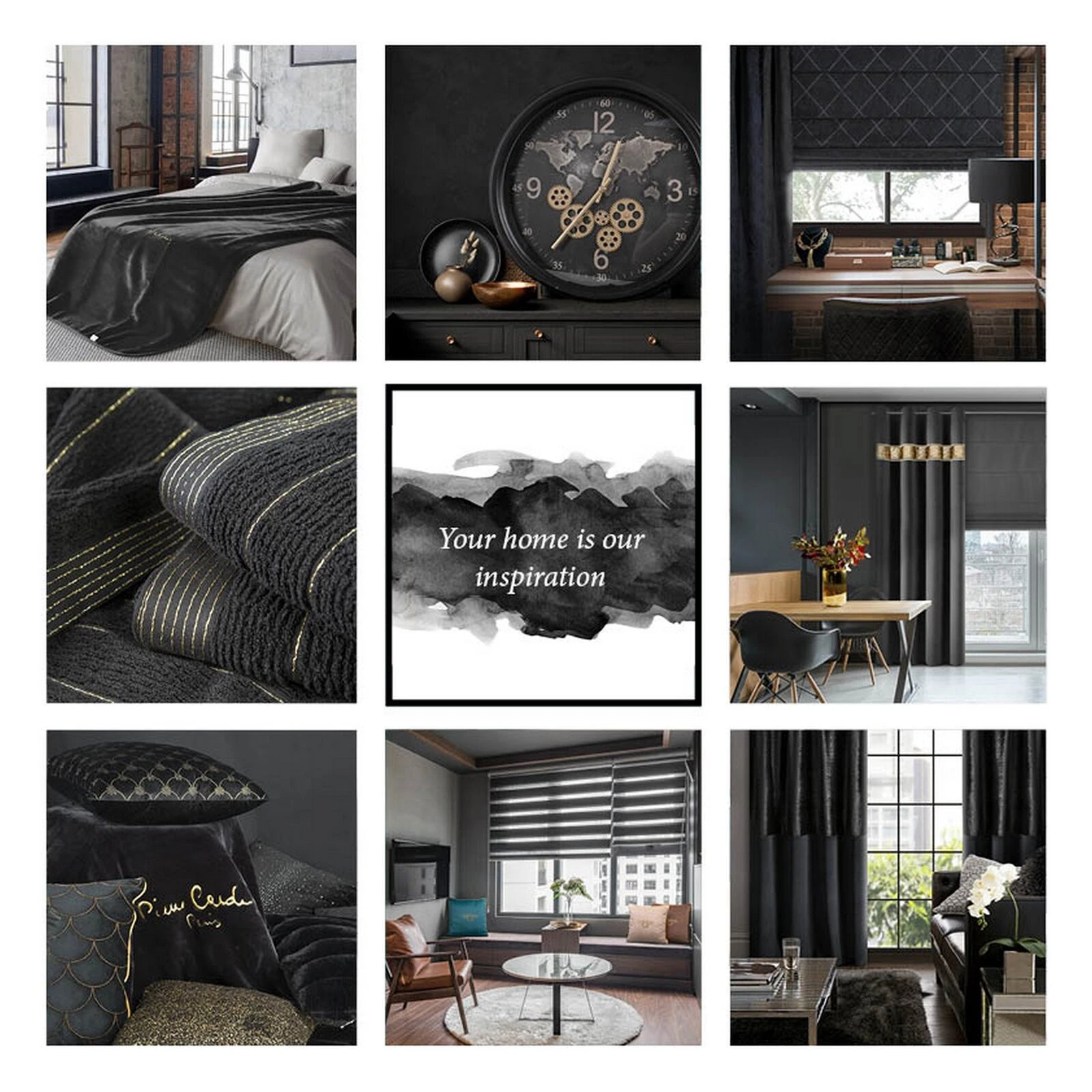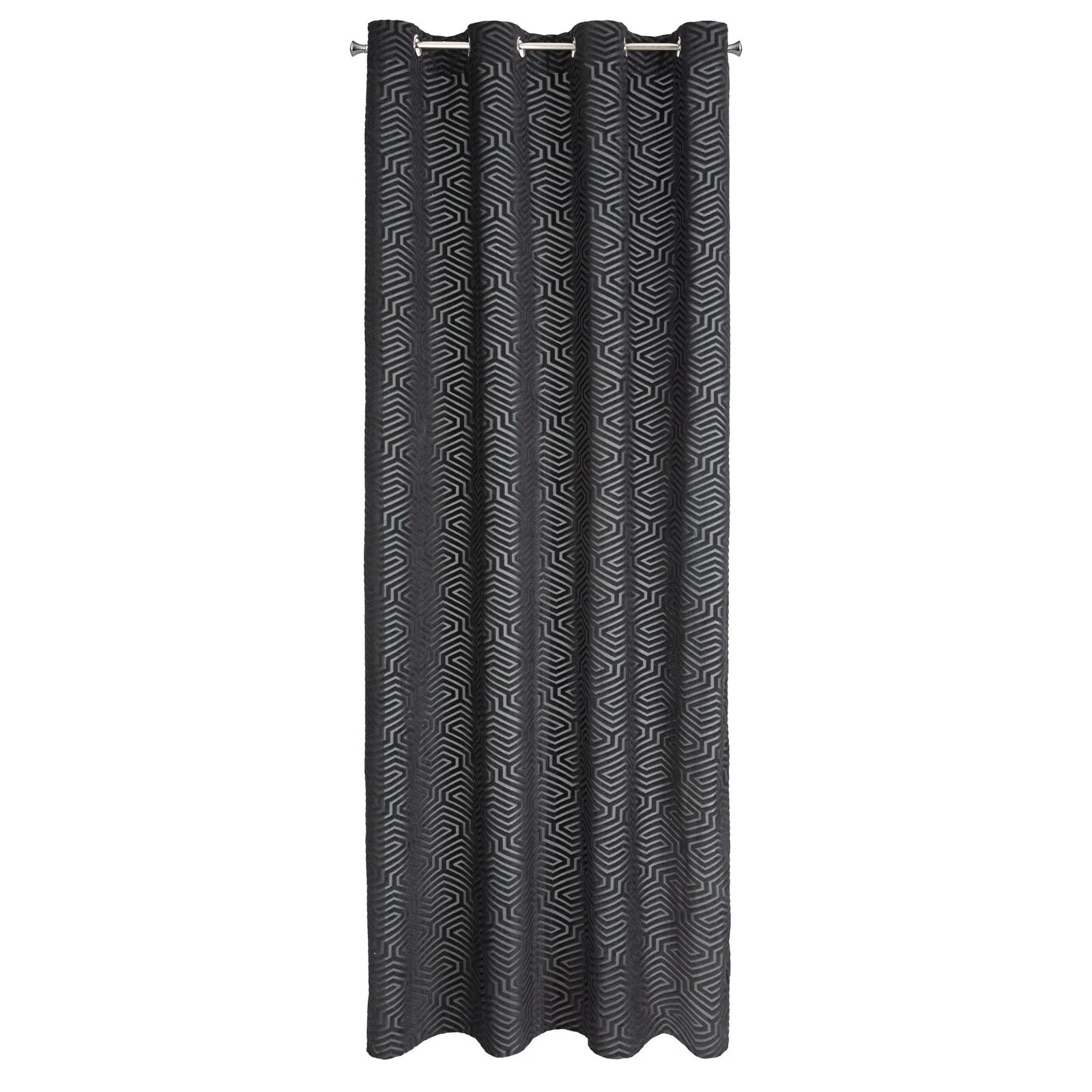 - Zasłona z welwetu żakardowego z motywem geometrycznym szerokość: 140 cm, długość: 250 cm, kolor: czarny, Gramatura: 320 GSM, Skład: 100% poliester