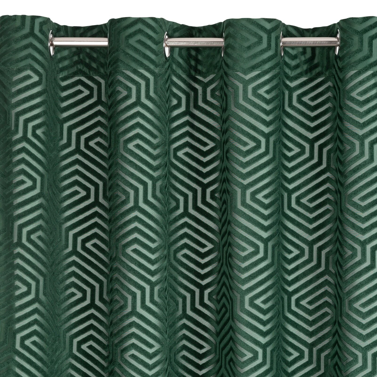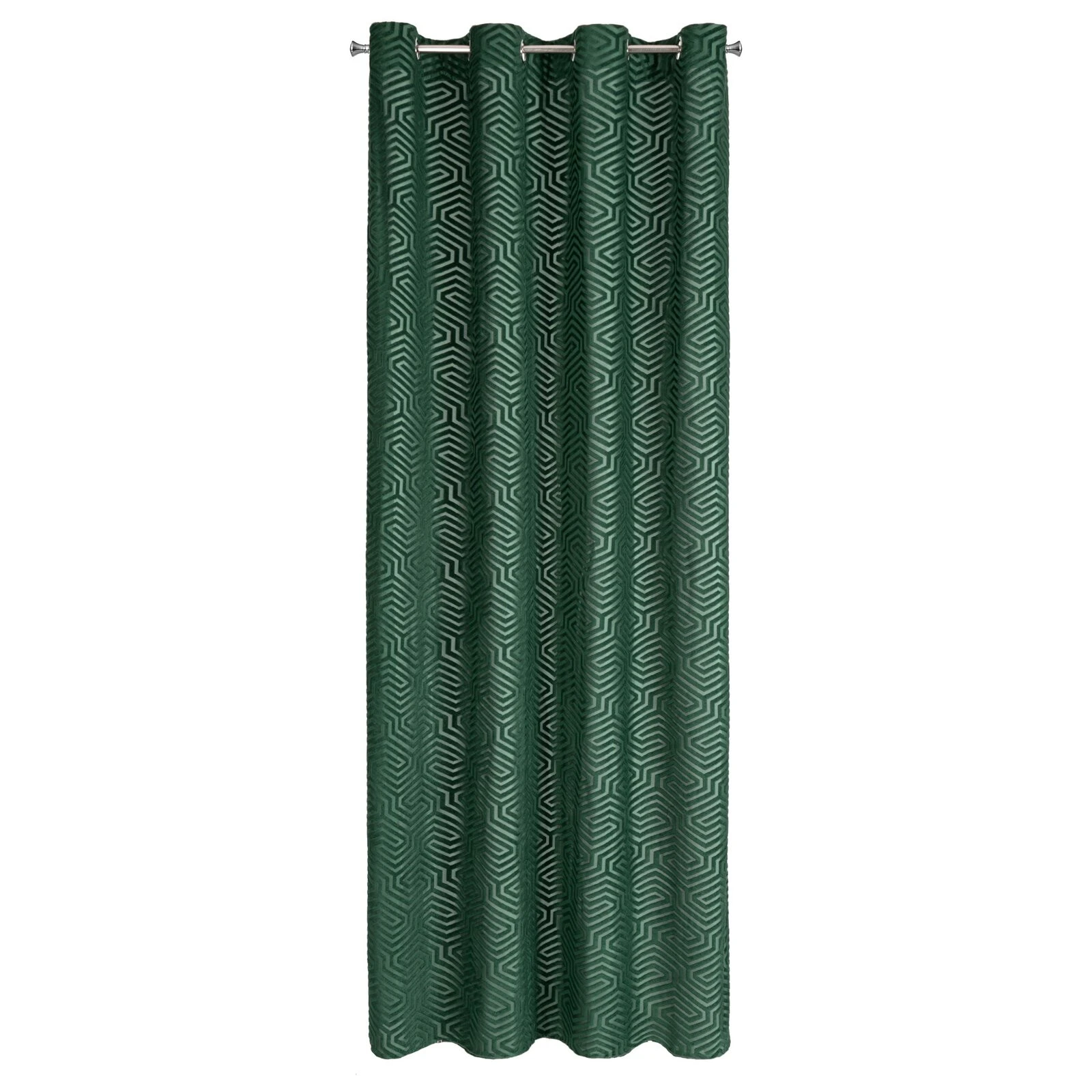 - Zasłona z welwetu żakardowego z motywem geometrycznym szerokość: 140 cm, długość: 250 cm, kolor: ciemnozielony, Gramatura: 320 GSM, Skład: 100% poliester