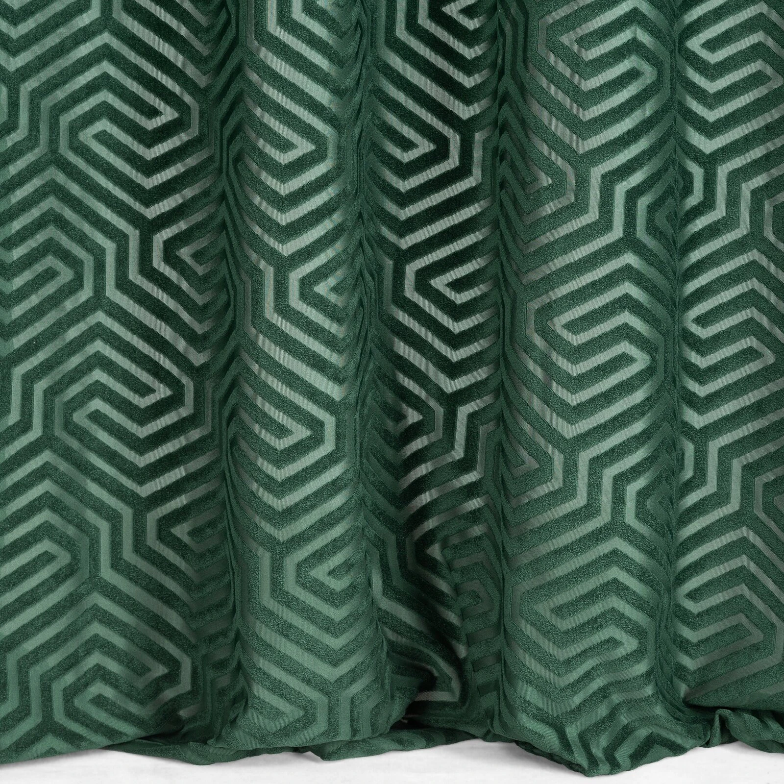 Zasłona z welwetu żakardowego z motywem geometrycznym szerokość: 140 cm, długość: 250 cm, kolor: ciemnozielony, Gramatura: 320 GSM, Skład: 100% poliester