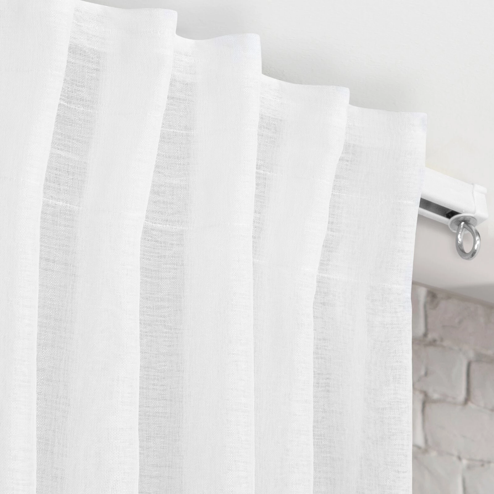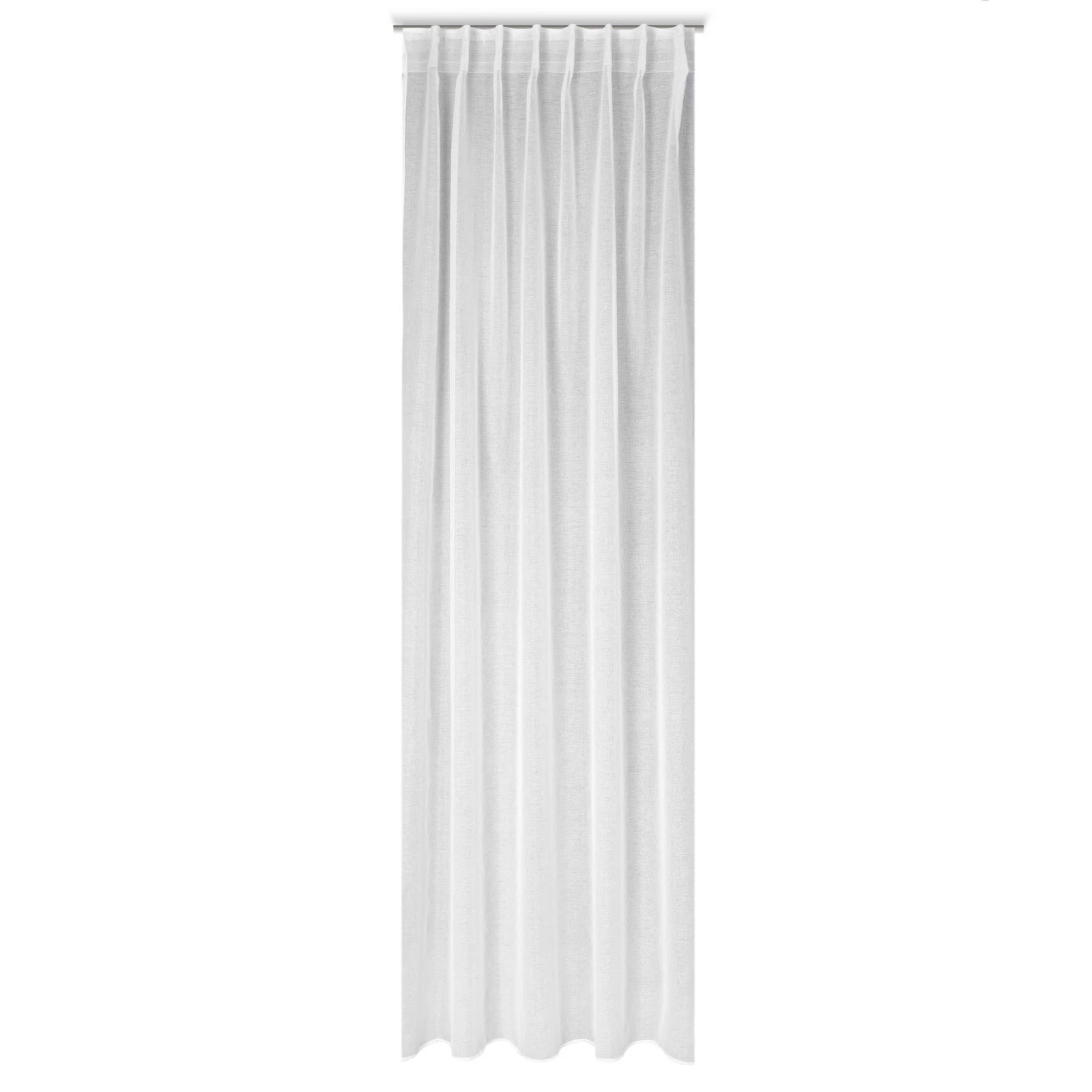 - Firana gotowa jednokolorowa z etaminy na taśmie flex szerokość: 140 cm, długość: 300 cm, kolor: biały, Gramatura: 50 GSM, Skład: 100% poliester