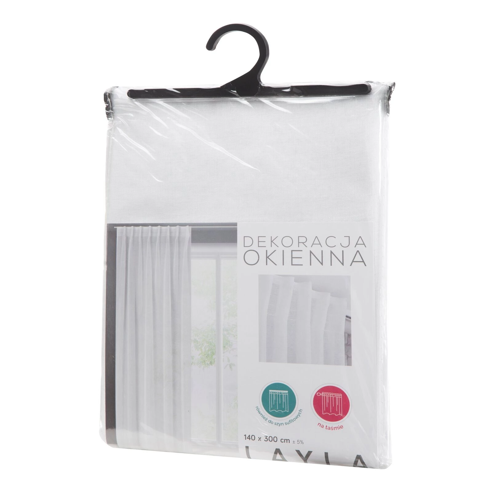 FIRANA GOTOWA LAYLA NA TAŚMIE 140 X 300 CM BIAŁY
