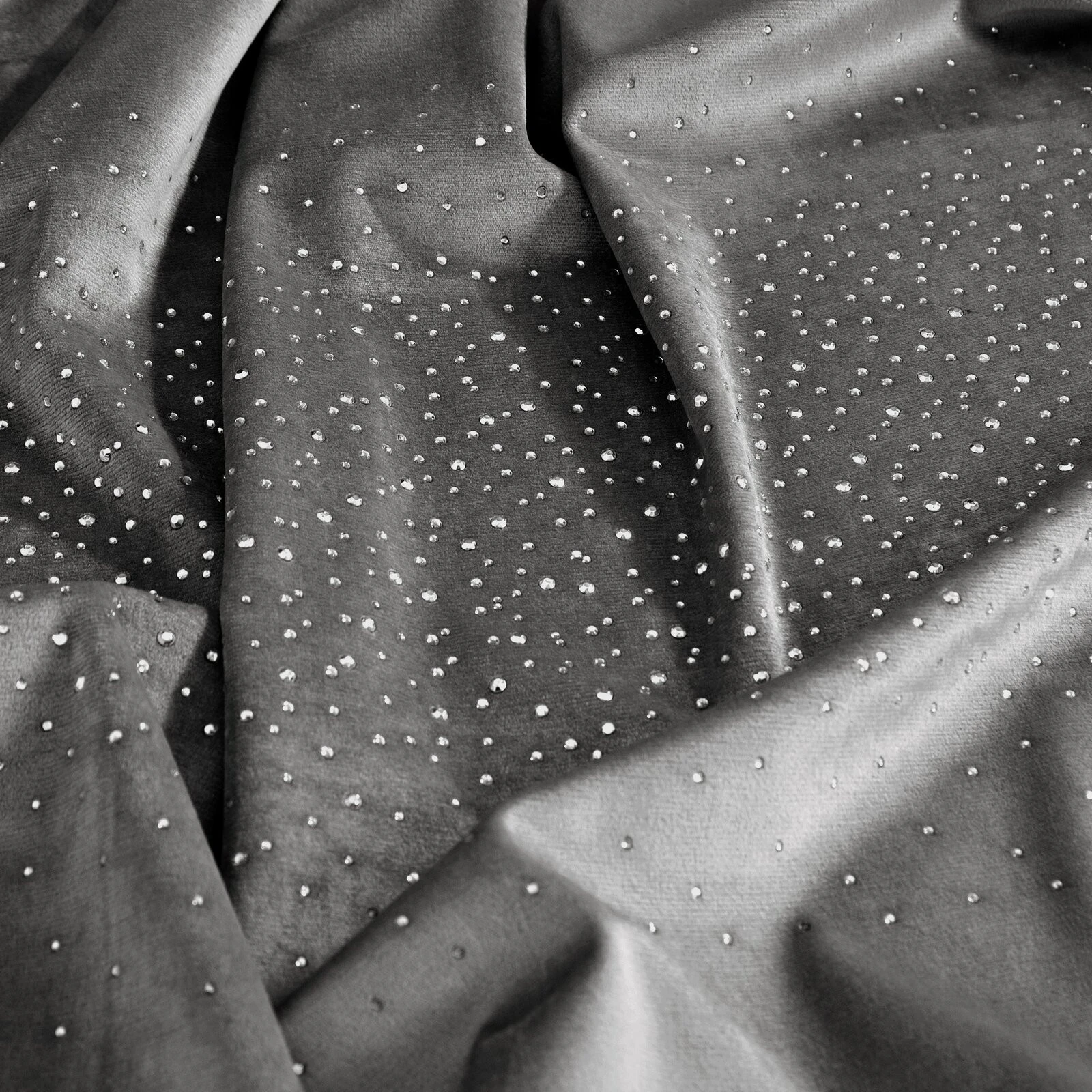 - Zasłona welwetowa ze srebrnymi cyrkoniami szerokość: 140 cm, długość: 270 cm, kolor: stalowy, Gramatura: 215 GSM, Skład: 100% poliester