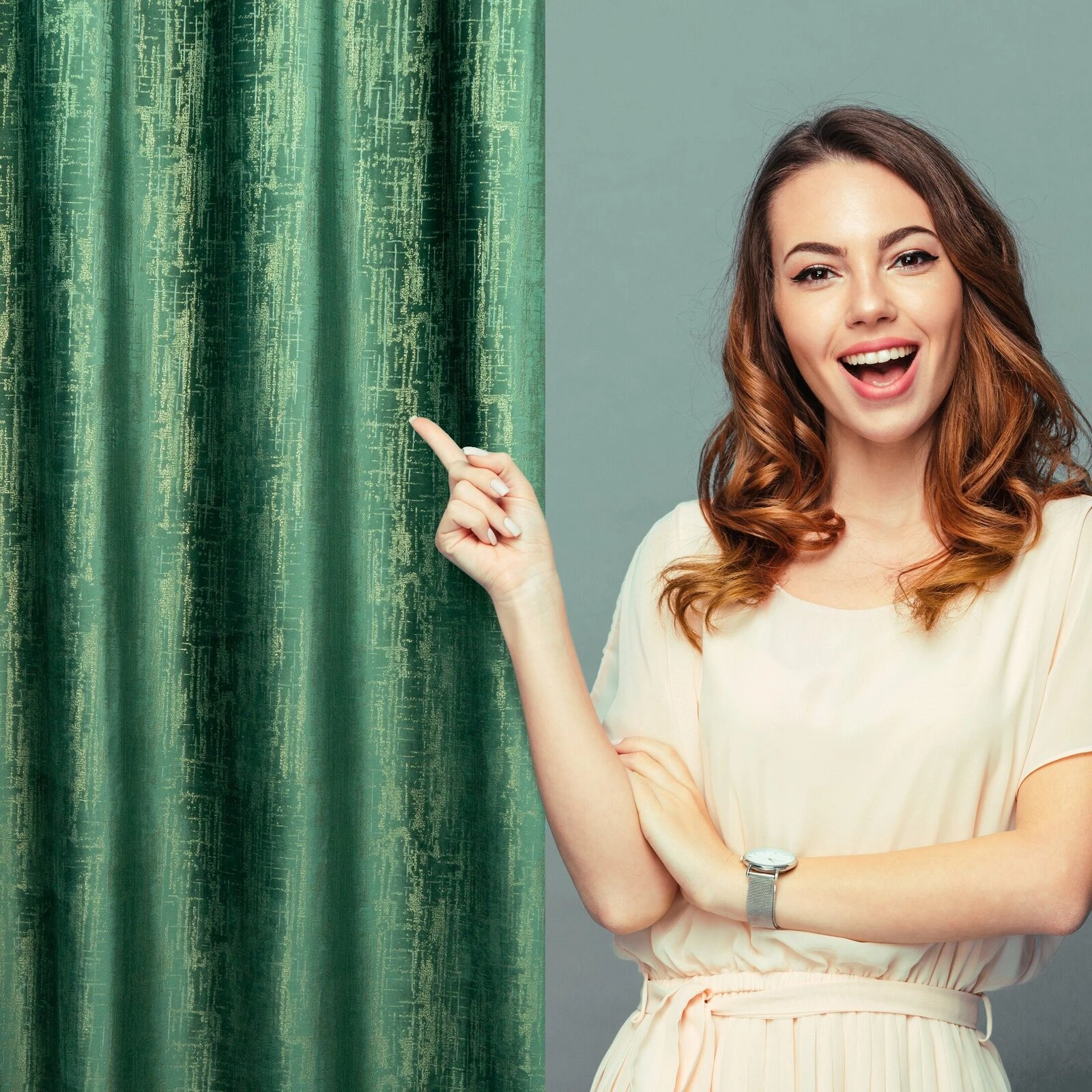 - Zasłona welwetowa zdobiona szampańskim nadrukiem szerokość: 140 cm, długość: 250 cm, kolor: ciemnozielony, Gramatura: 200 GSM, Skład: 100% poliester