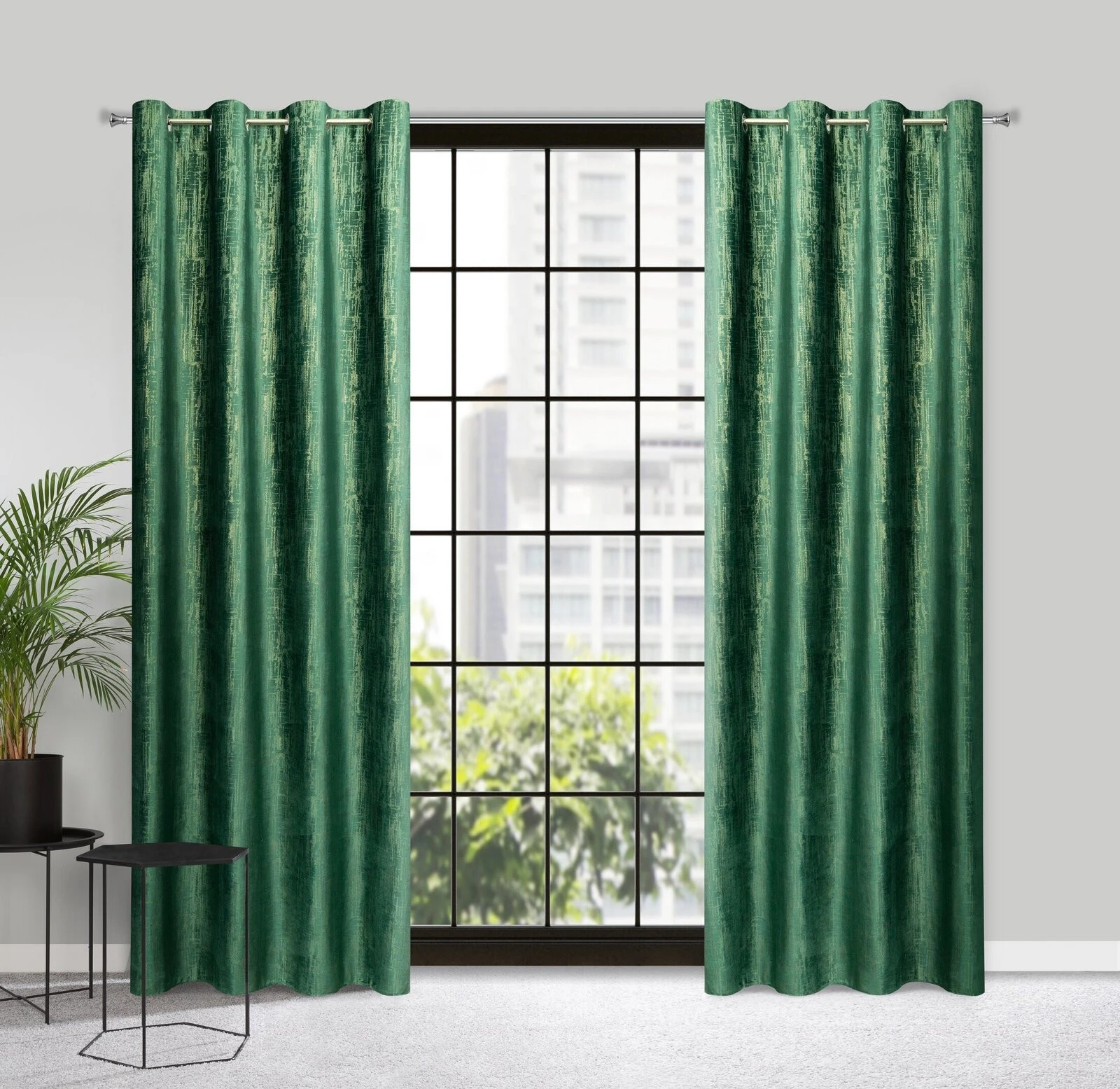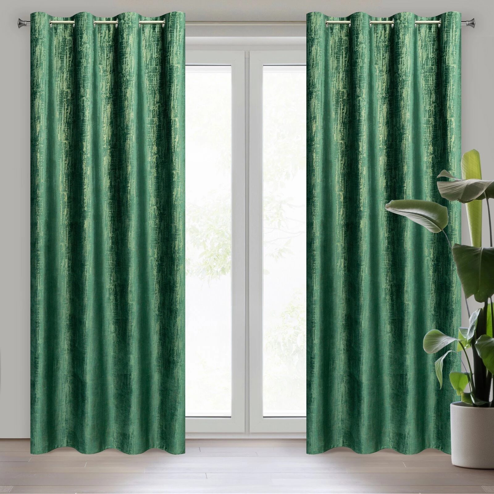 Zasłona welwetowa zdobiona szampańskim nadrukiem szerokość: 140 cm, długość: 250 cm, kolor: ciemnozielony, Gramatura: 200 GSM, Skład: 100% poliester